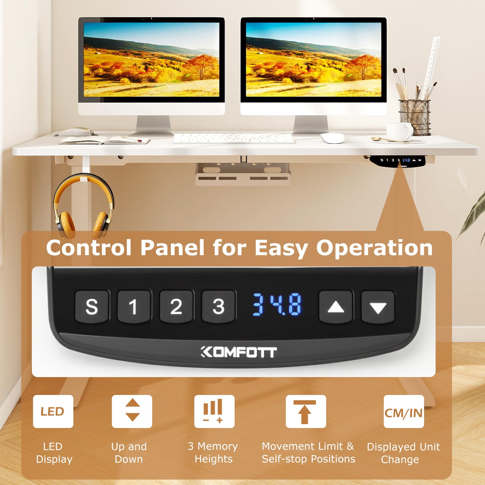 This electric standing desk offers a versatile workspace with an adjustable height range from 27.6" to 47.3", enabling smooth transitions between sitting and standing for improved comfort. The spacious tabletop provides ample space for monitors and essential accessories, while the headphone hook and cable management holes help keep your workspace tidy. Equipped with 3 memory height settings, the stand up allows for quick switching between your preferred positions at the touch of a button. Designed for safety and durability, the ergonomic sit stand desk features an anti-collision system for secure operation. Together with heavy-duty metal frame, higher stability is ensured.
