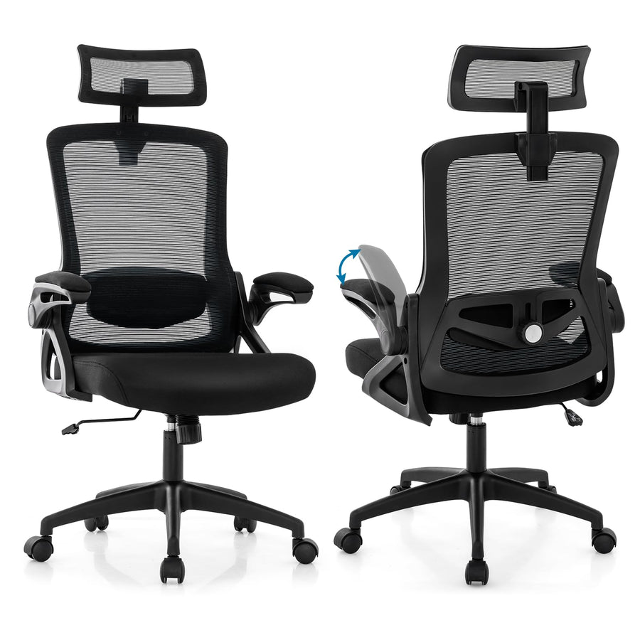 Upgrade your workspace with our ergonomic office chair, a perfect blend of functionality and comfort. Enjoy customizable support with adjustable headrest and armrests, along with an upholstered lumbar support ensuring the better sitting experience. You can turn the knob to easily adjust the lumbar support. Moreover, the breathable mesh backrest with curved design and thick cushion provide all-day comfort, while the height adjustment feature allows for personalized use. In addition, the rocking function makes it possible for you to relax at any time. With a stable five-star base and smooth rollers, this chair is perfect for any workspace. Whether at home or in a corporate office, its elegant and modern design blends in perfectly with the environment.