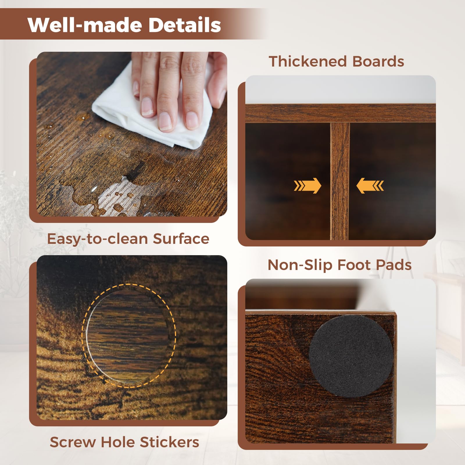 Non-slip foot pads protect the floor from scratches