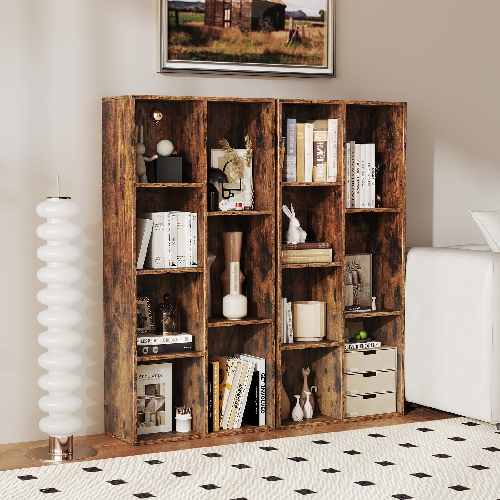 Struggling with clutter or limited storage? This open bookcase provides an ideal solution with its 7 spacious compartments, offering classified storage for books and decorative items. Designed for both vertical and horizontal placement, the cube storage organizer adapts easily to different room layouts and needs. Safety is ensured with dual anti-toppling kits that secure the unit firmly to the wall, minimizing tipping risks. Combining functionality and style, this versatile display shelf enhances organization while complementing various spaces.