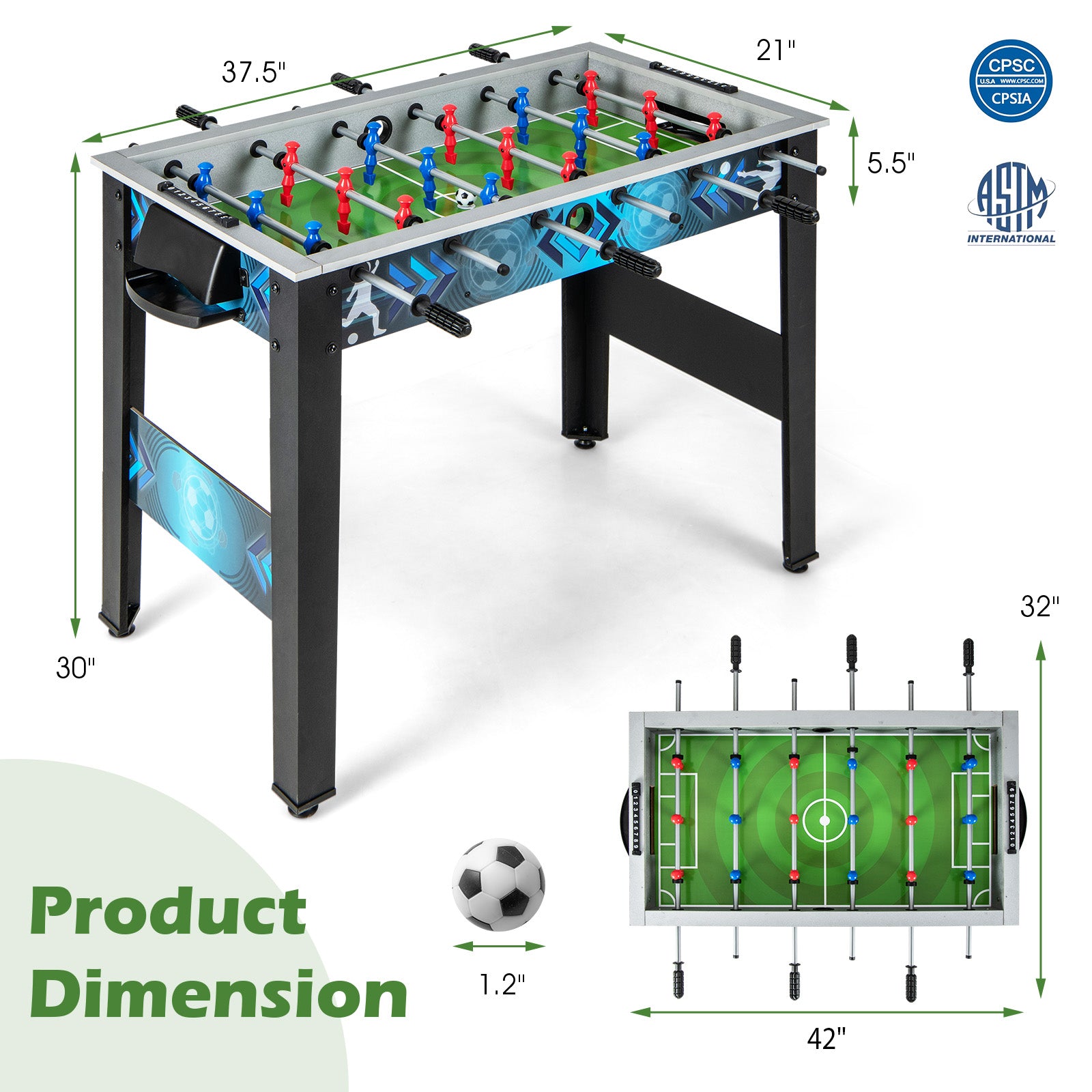 - [More Exquisite Details]: This football table is crafted with a stable structure and premium materials to ensure long-lasting durability. The 4 supportive legs keep the table steady during intense gameplay. The clear score counter and convenient goal box add convenience and excitement to your matches.