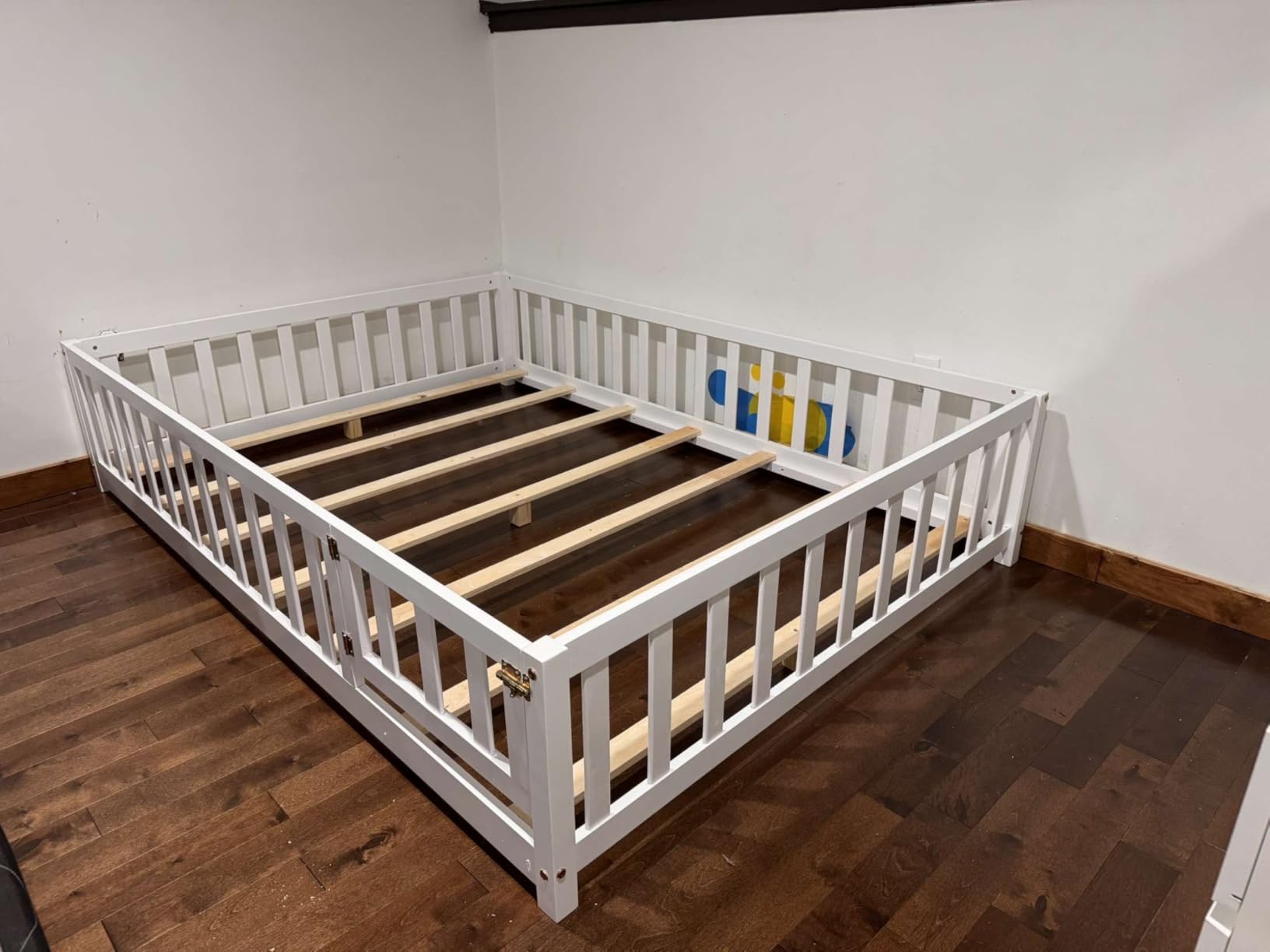 - [Safe Playpen with Removable Guardrails and Door]: The Montessori floor bed features 13.5" full-length guardrails for added safety, while the safety door with a secure latch ensures extra peace of mind. Both the guardrails and door are removable, offering flexibility as your child grows and their needs change.