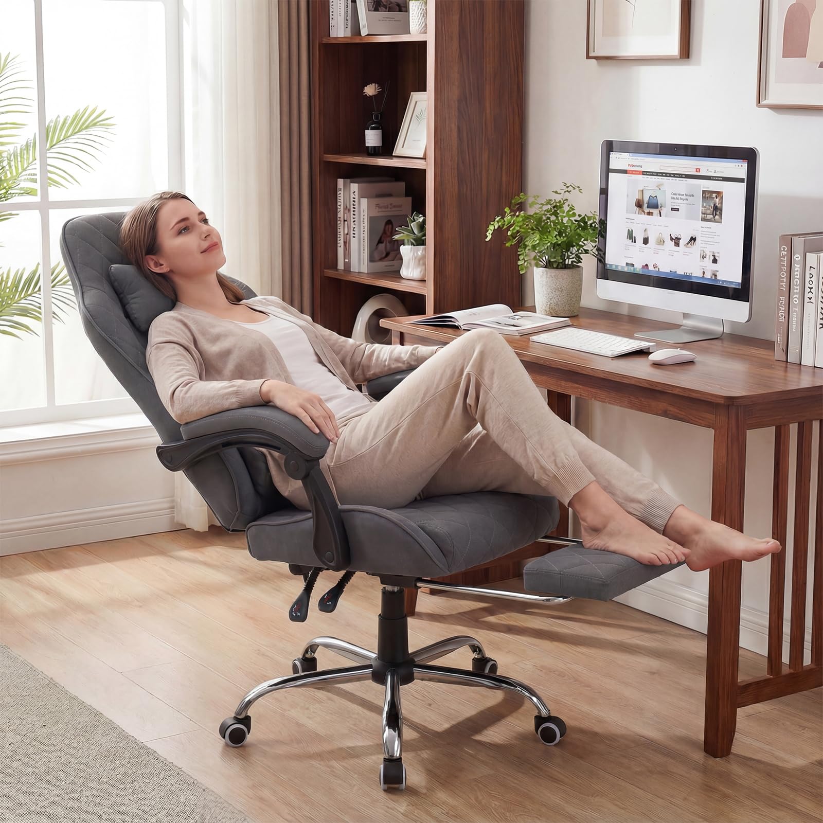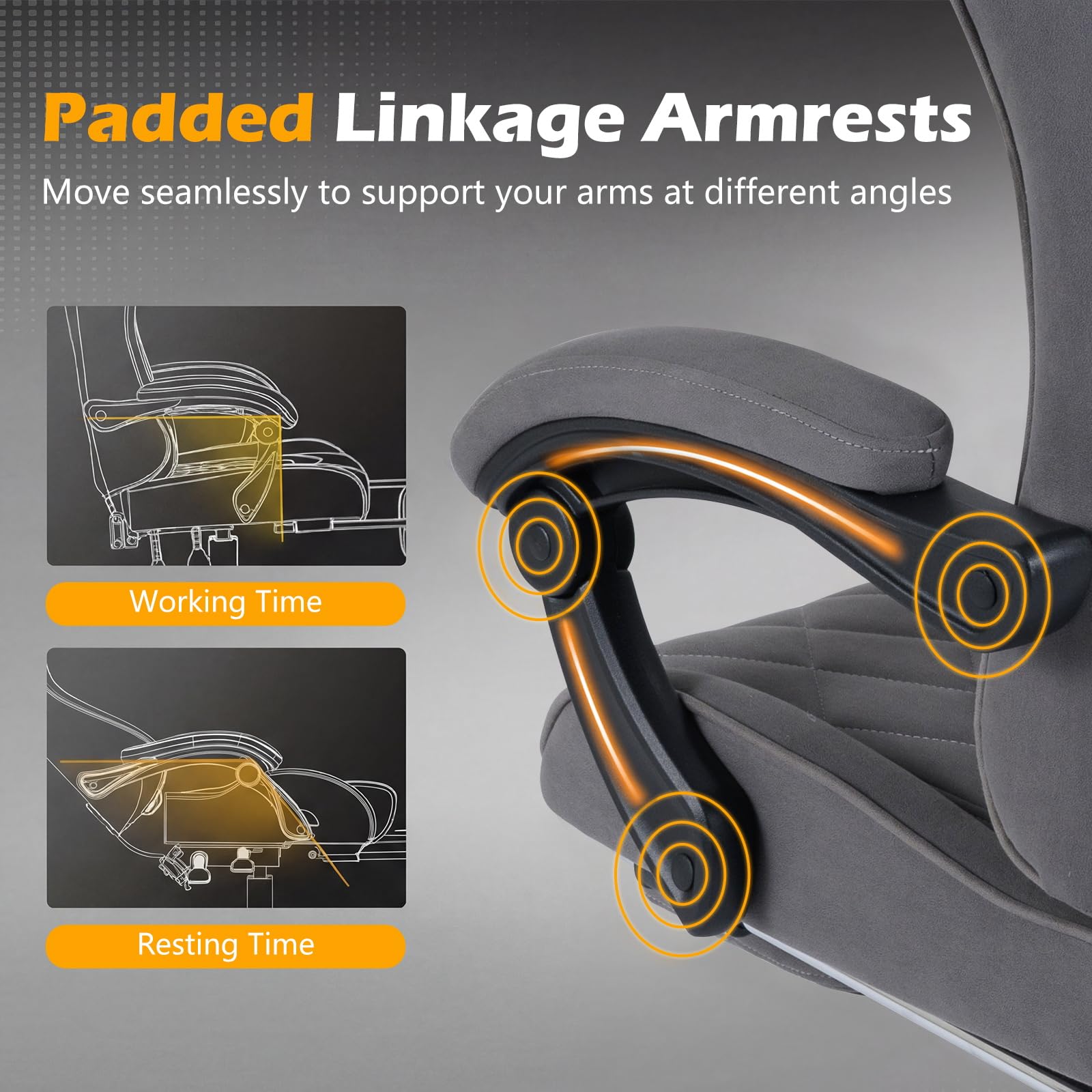 Level up your comfort with this comfortable gaming chair designed for long hours of play or work. Its ergonomic design to reduce fatigue includes a thick headrest, plush lumbar support, and linkage armrests, complemented by a retractable footrest to help you unwind. The reclining backrest tilts smoothly from 90° to 135°, while the swivel seat rises between 19" and 23" to fit your posture perfectly, offering flexible features to suit your needs. Upholstered in soft, skin-friendly leathaire and filled with high-density sponge, the game chair provides unmatched softness that lasts even after extended use. Built with well-made details on a heavy-duty 5-claw metal base and SGS-certified gas rod, it delivers robust stability and supports up to 330 lbs. Equipped with 360° rolling casters, this versatile computer chair glides effortlessly, making it a stylish and practical addition to any gaming setup, home office, or study space.