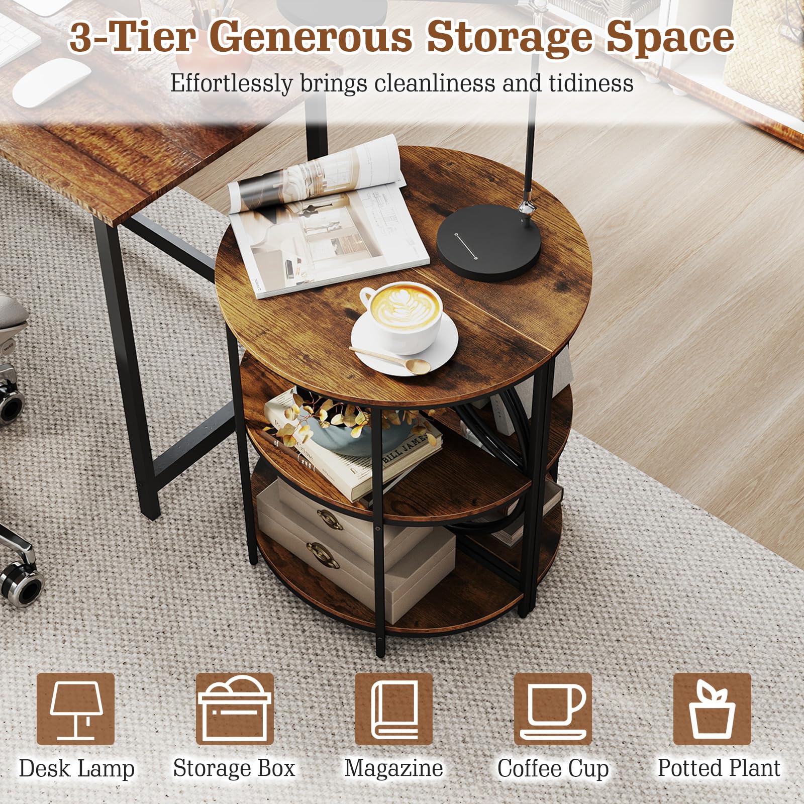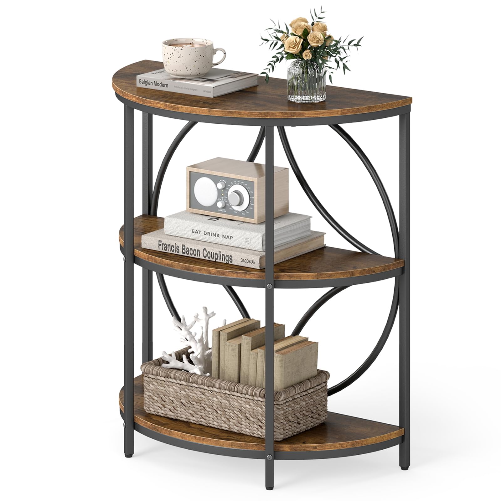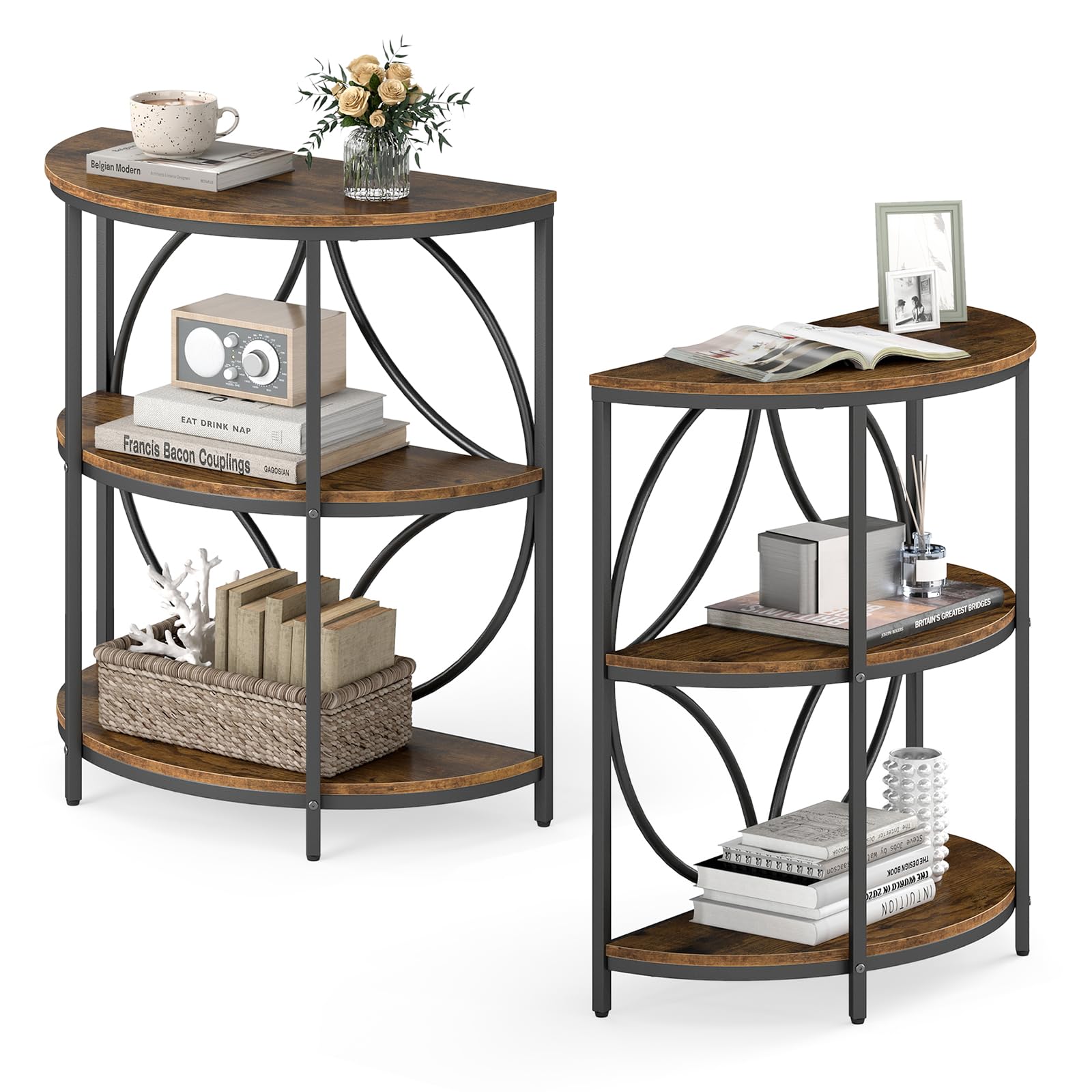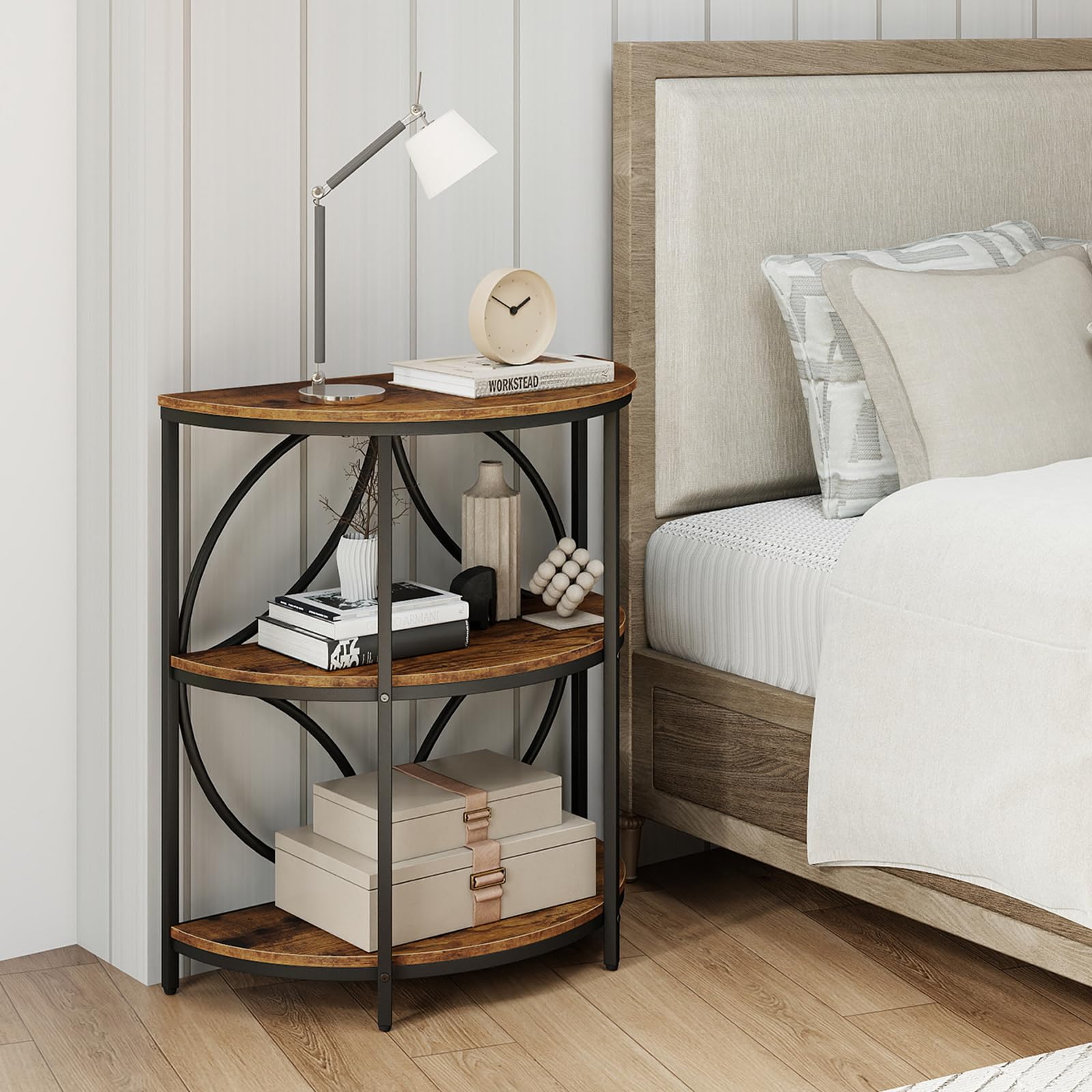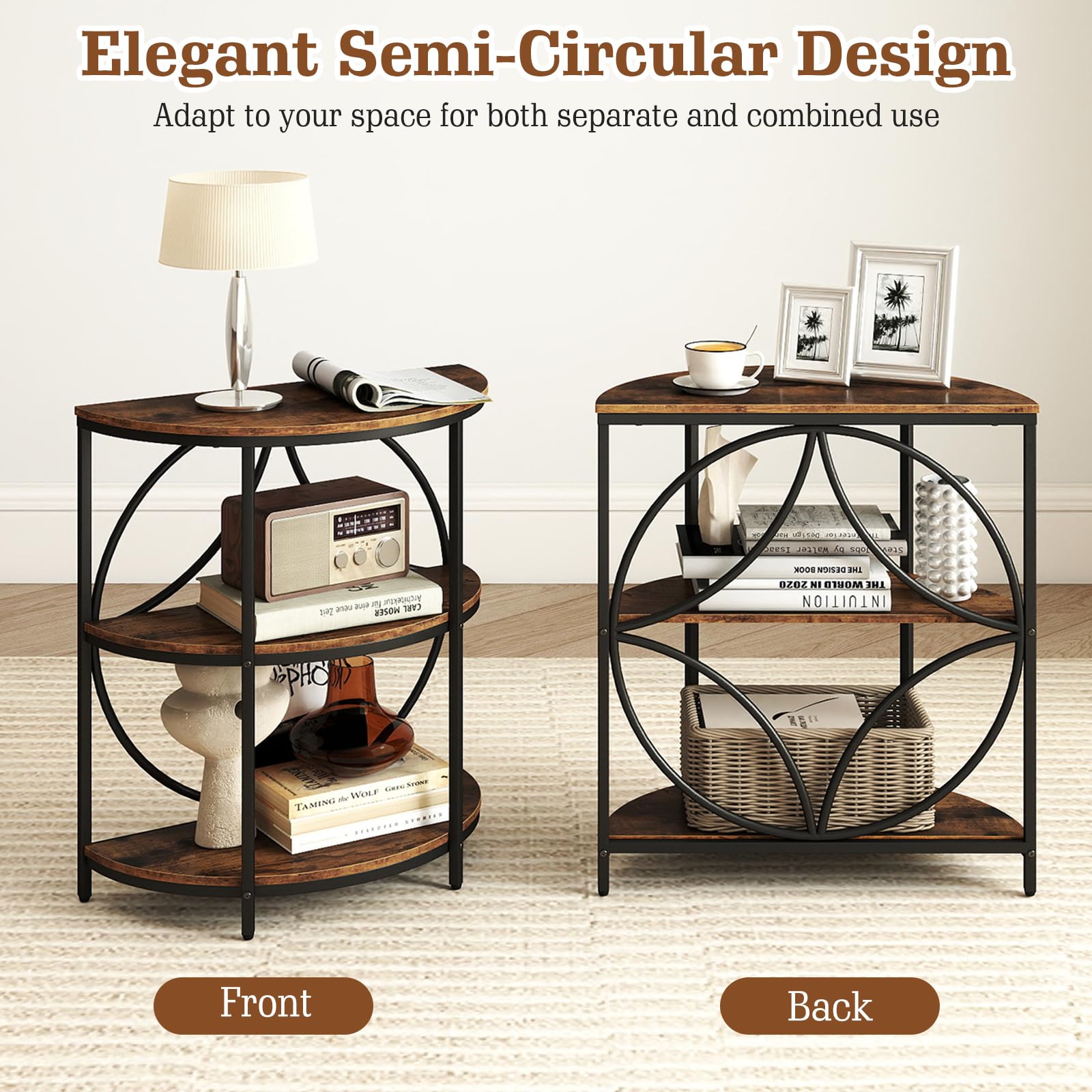 Featuring a sturdy metal frame with adjustable foot pads, this end table ensures excellent stability across various floor types. Plus, this elegant semi-circular accent table combines a sleek design with versatile functionality, offering the option to join 2 units into a complete circle for expanded use. 3-tier large shelves provide ample storage for books, decorations or other essentials, helping keep your space organized and clutter-free. Moreover, ideal as a nightstand or living room accent, the minimalist yet adaptable style suits a range of interior themes from modern to industrial. Designed for effortless assembly and easy maintenance, this solid nightstand enhances both the practicality and aesthetic of your living space.