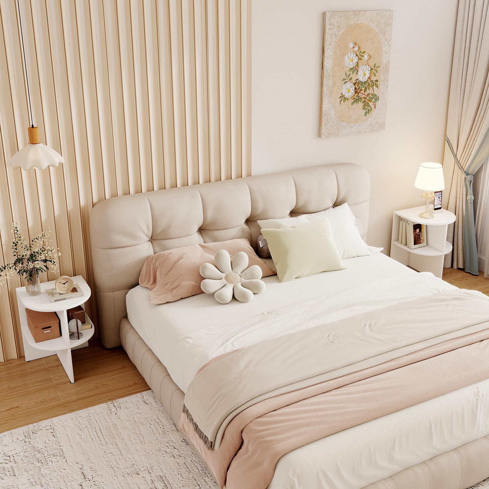 This small half round bedside table serves as a practical and stylish storage solution that doesn't compromise on space. With a compact size of 15” x 15” x 19” perfect for narrow spaces, this side table offers 2-tier shelves for convenient storage options. Meanwhile, its elegant semi circle design not only allows flexible combination into a larger coffee table, but also coordinates well with various indoor decorations, suitable for living room, bedroom and office. There are more thoughtful details including easy-to-clean surface and screw hole covers for both style and convenience. Plus, the anti-slip foot pads provide stability for your peace of mind.