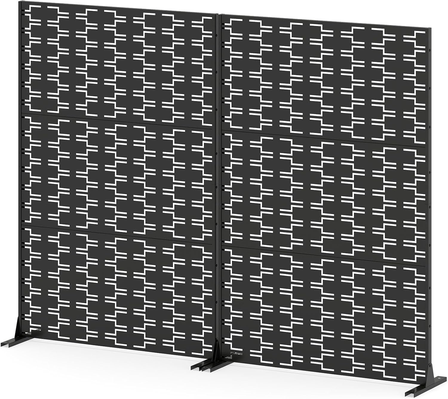 Enhance privacy and style in any space with this freestanding metal screen, featuring an artistic hollow pattern. Measuring 72''H x 48''W, the durable metal construction with a powder-coated finish ensures long-lasting stability. The H-shaped base provides extra support, while 4 included expansion bolts allow secure outdoor installation on concrete. Easily connect multiple panels using the included screws to create custom layouts for patios, gardens, or balconies. Beyond privacy, this versatile panel can serve as a trellis for climbing plants or a stylish cover for items like air conditioning units.