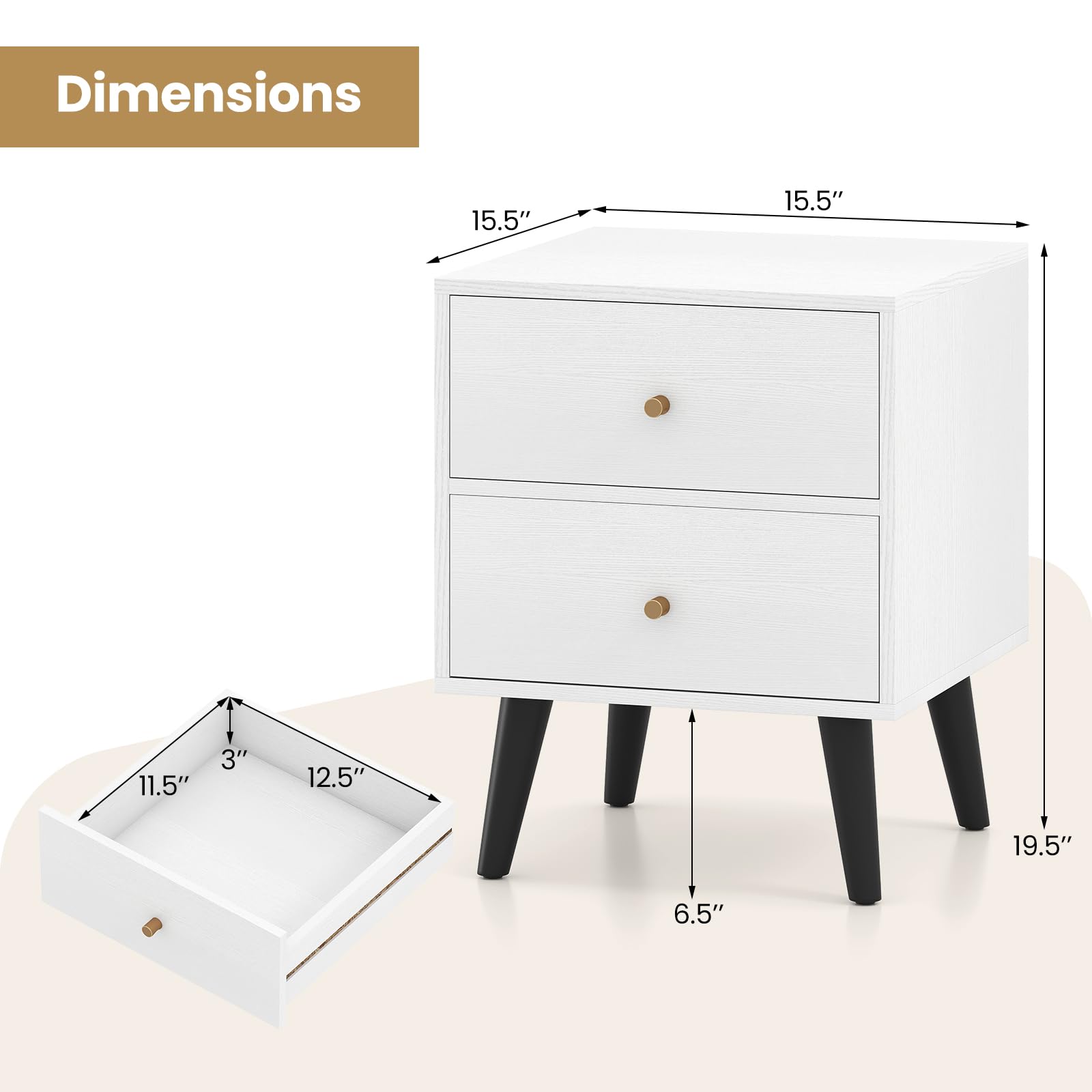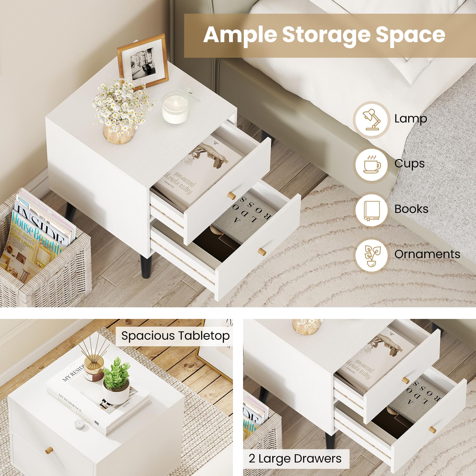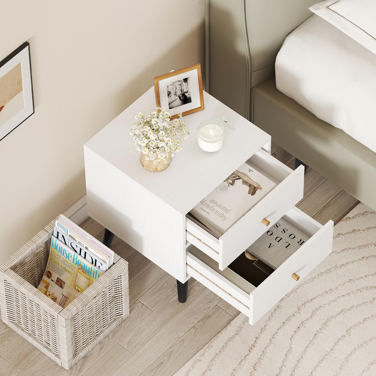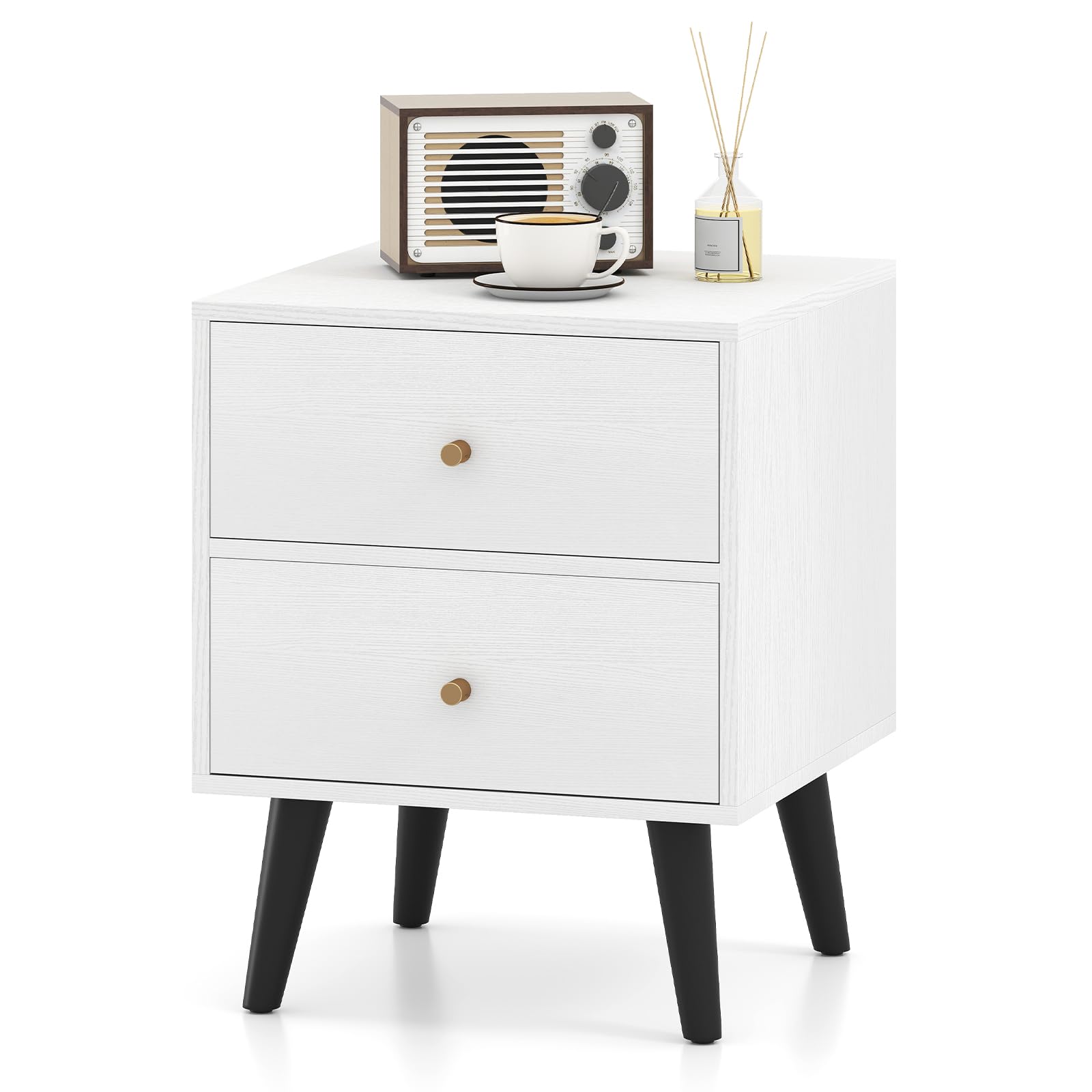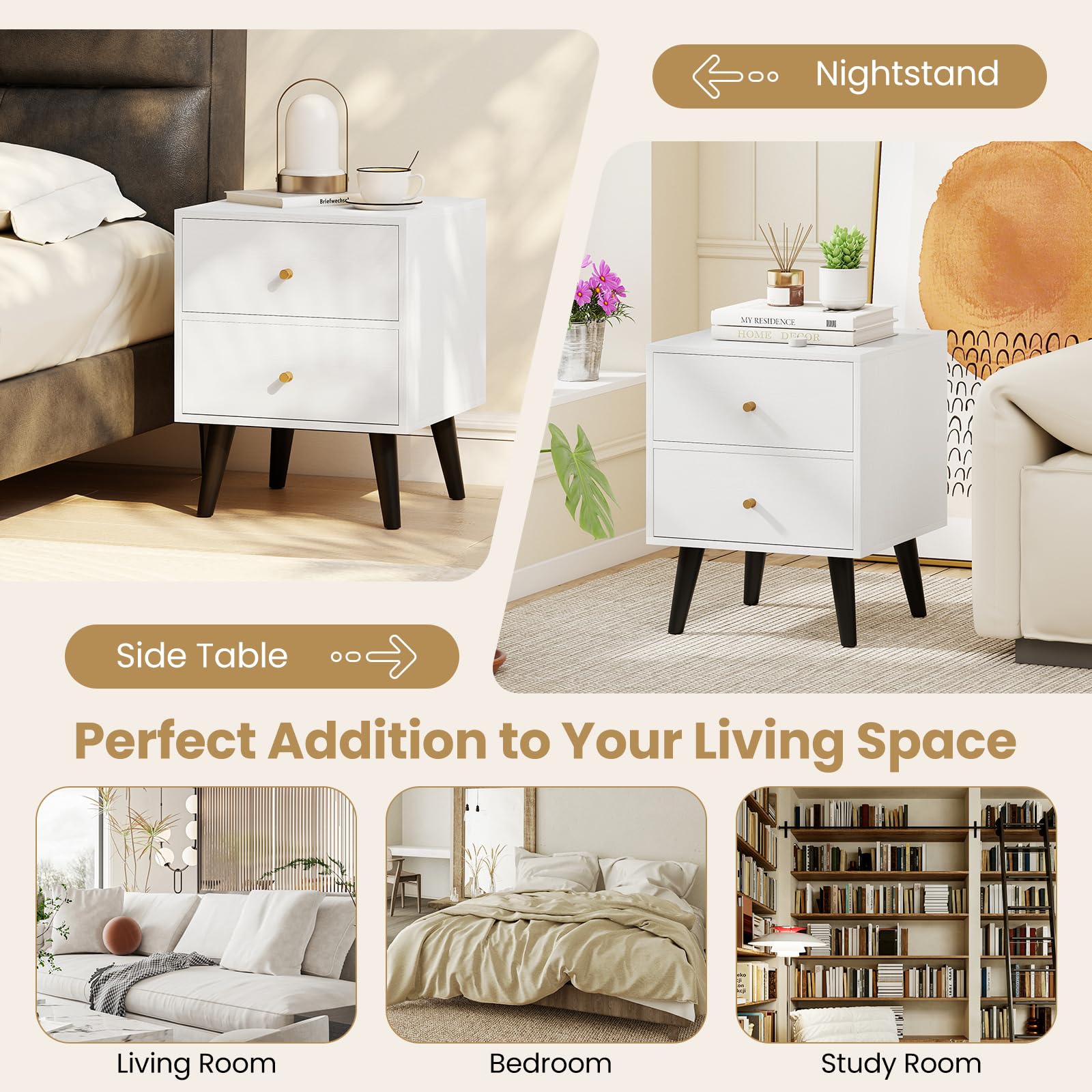 Upgrade your bedroom or living space with this versatile 2-drawer nightstand, expertly crafted for both style and function. With ample storage space on the spacious tabletop and in large drawers, this bedside table keeps your essentials organized and within reach—ideal as a bedroom nightstand or a living room end table. Sturdy elevated support legs ensure stability while making floor cleaning simple, and the minimalist modern design complements any decoration effortlessly. Whether you need a sofa side table, compact nightstand, or small storage cabinet for your office or apartment, this multipurpose furniture piece adapts to your needs, and is a perfect addition to your living space.