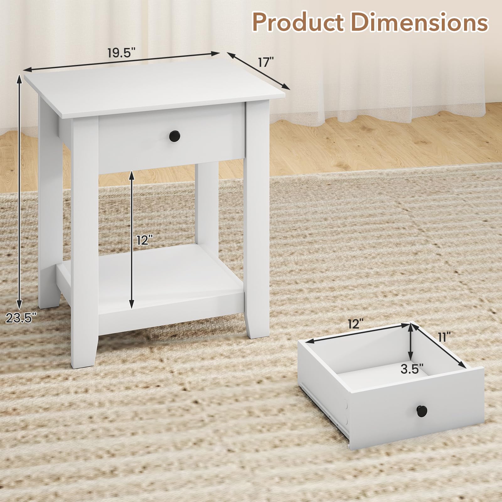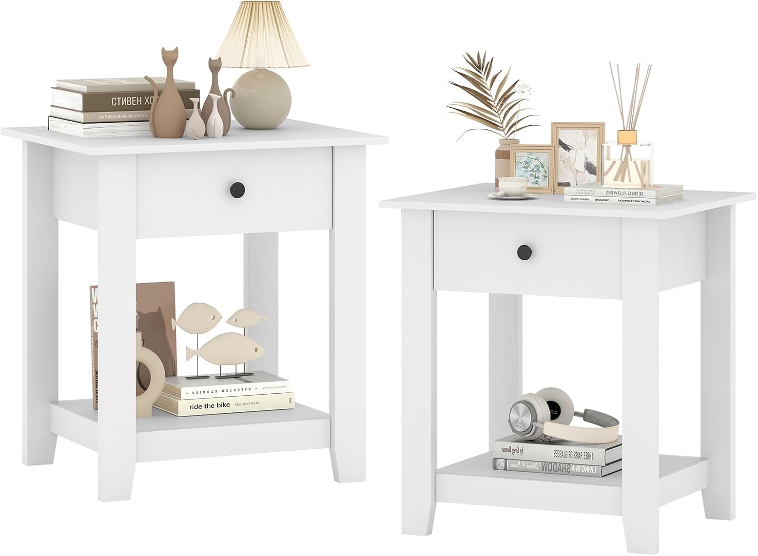 Bring style and practicality right beside your bed with our chic modern nightstand. A marvel in both design and function, this compact yet spacious nightstand holds up to 110 lbs on its tabletop, allowing you to keep everything from your hefty alarm clock to a soothing bedside lamp secure and within reach. Featuring a specially engineered drawer for silencing middle-of-the-night searches and a stylish open shelf perfect for bedtime reads, its 2-tier arrangement clears clutter with panache. All settled on a versatile footprint perfect for cozy spaces and large rooms alike, and easy to maintain—just a quick wipe! Ready for a game-changer in your sleeping quarters? You’ve just found it. Elevate your bedroom now!