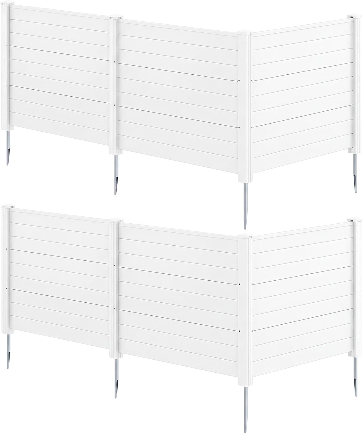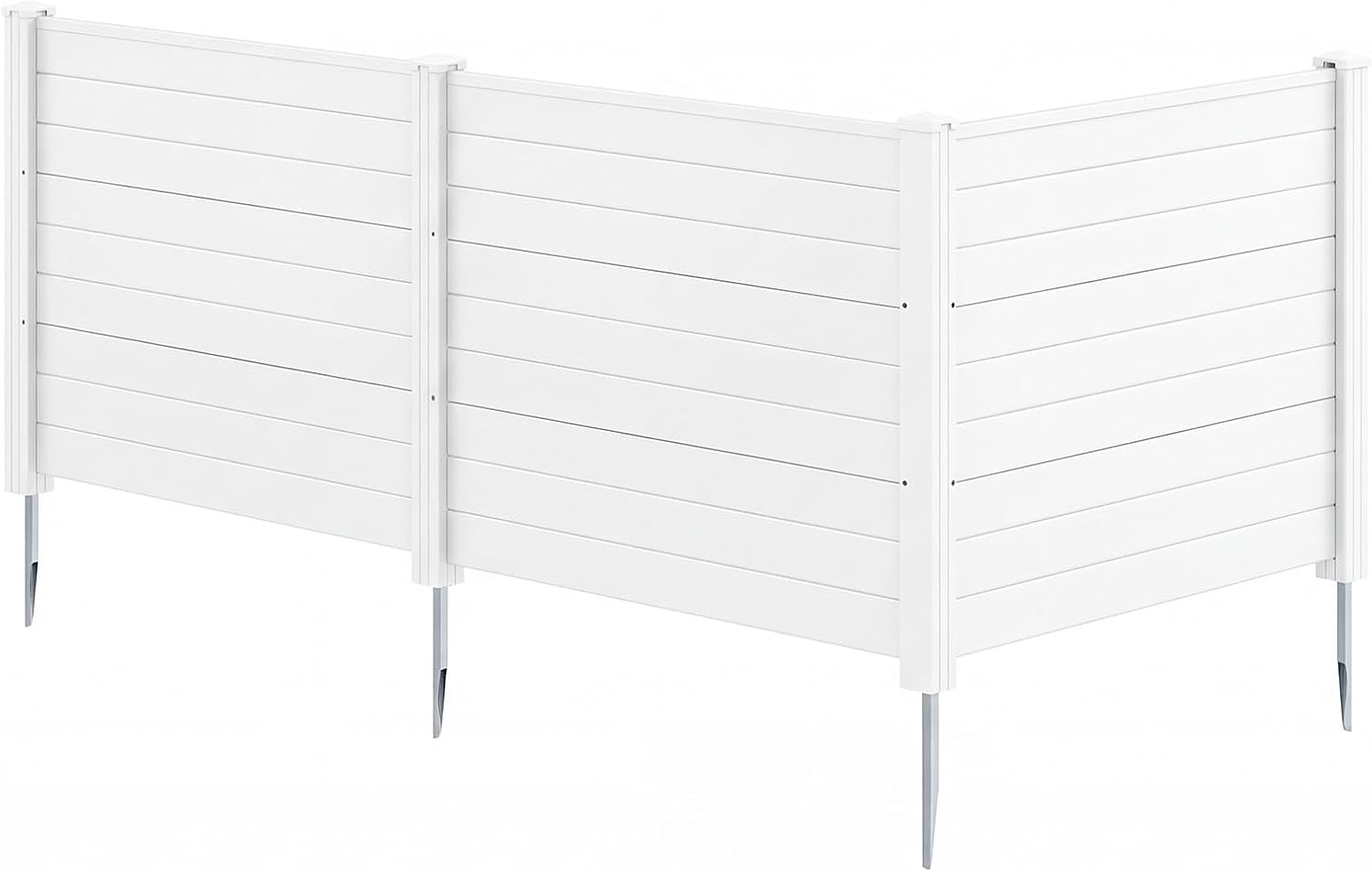 Upgrade your outdoor space in minutes with these no-dig privacy fence panels. Designed for hassle-free and renter-friendly installation, simply slide and secure the modular panels, insert the galvanized stakes, and enjoy a clean, polished look—no tools, concrete, or digging required. Built from fade-resistant and crack-resistant PP, this decorative fencing conceals AC units, trash bins, and pool pumps while boosting curb appeal. The flexible modular design allows L-shaped, U-shaped, or straight configurations and can be expanded at any time to cover larger areas. Engineered to withstand outdoor weather, wind, and strict HOA standards, it's the easy DIY upgrade your backyard has been waiting for.