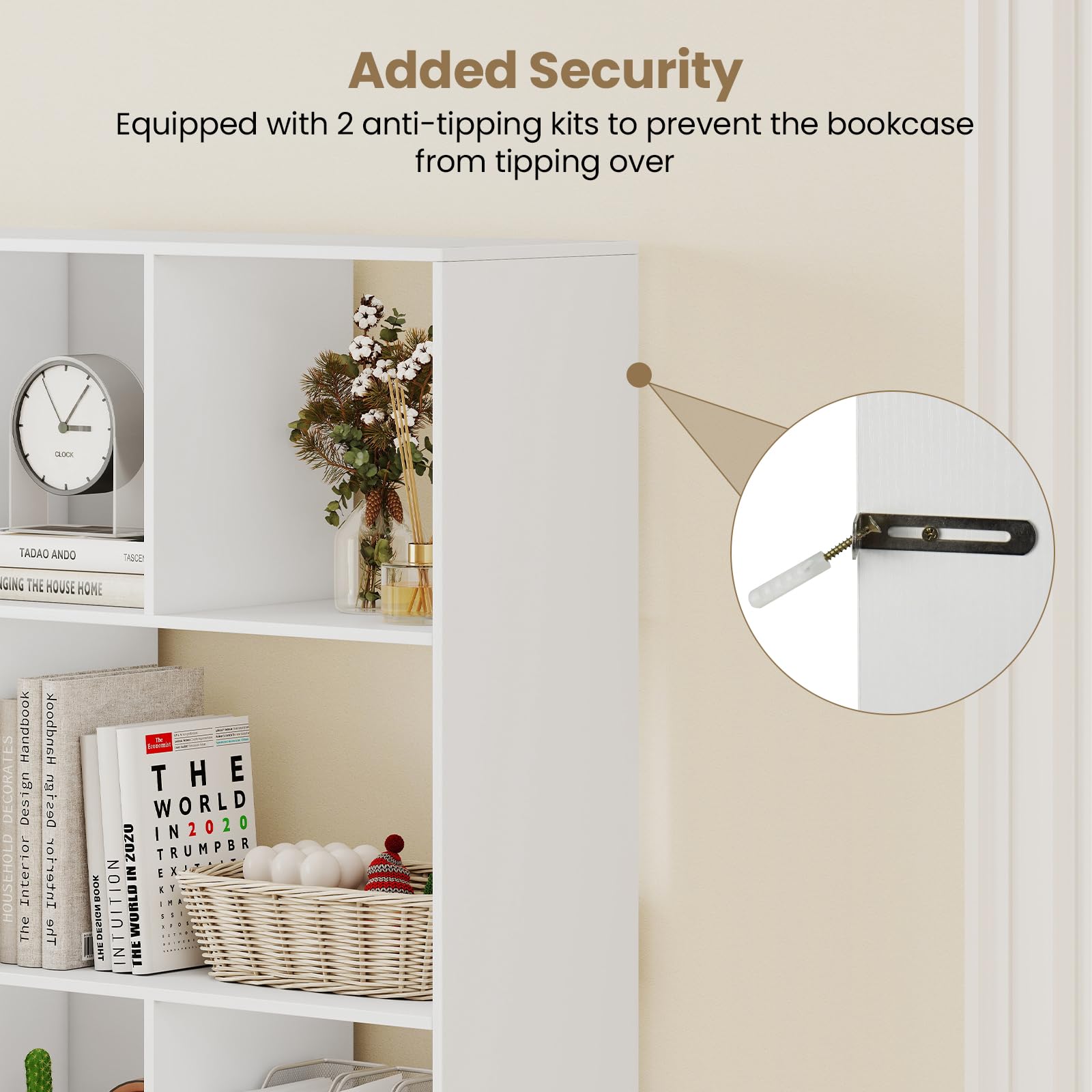 Organize in style with our robust 12-cube storage unit that captures sophistication and functionality all in one. Flaunting a spacious design to house everything from your favorite reads to cherished decorations, this contemporary bookshelf supports a whopping 485 lbs with absolute grace. Enhancements like corner braces and 2 anti-tip kits ensure superior reliability and safety. It’s not just a bookshelf; use it to elegantly divide up a room or spruce up any corner with its modern, clean aesthetic. Perfect for minimalist aficionados and functionality seekers alike, this is the storage makeover your home has been waiting for! Add charm and organization to your living space today!