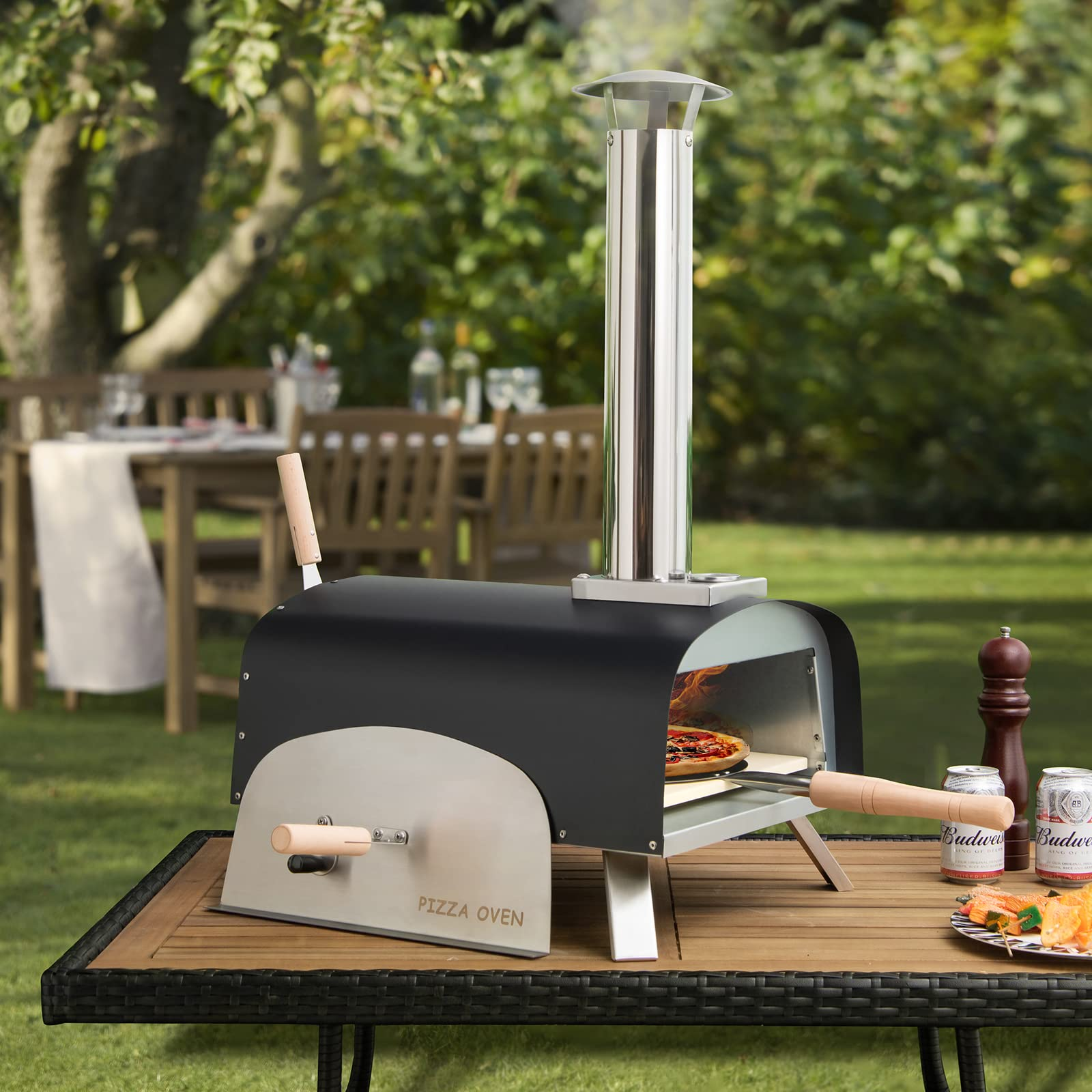 - Complete Accessories: The wood-fired pizza oven comes with a detachable door, a charging hopper, a removable chimney with a waterproof cap, a 13'' pizza stone, and a pizza shovel. These abundant pizza-baking kits are friendly to both beginners and pizza pros. And the beech wood handle is cool to the touch, protecting you from scalding.