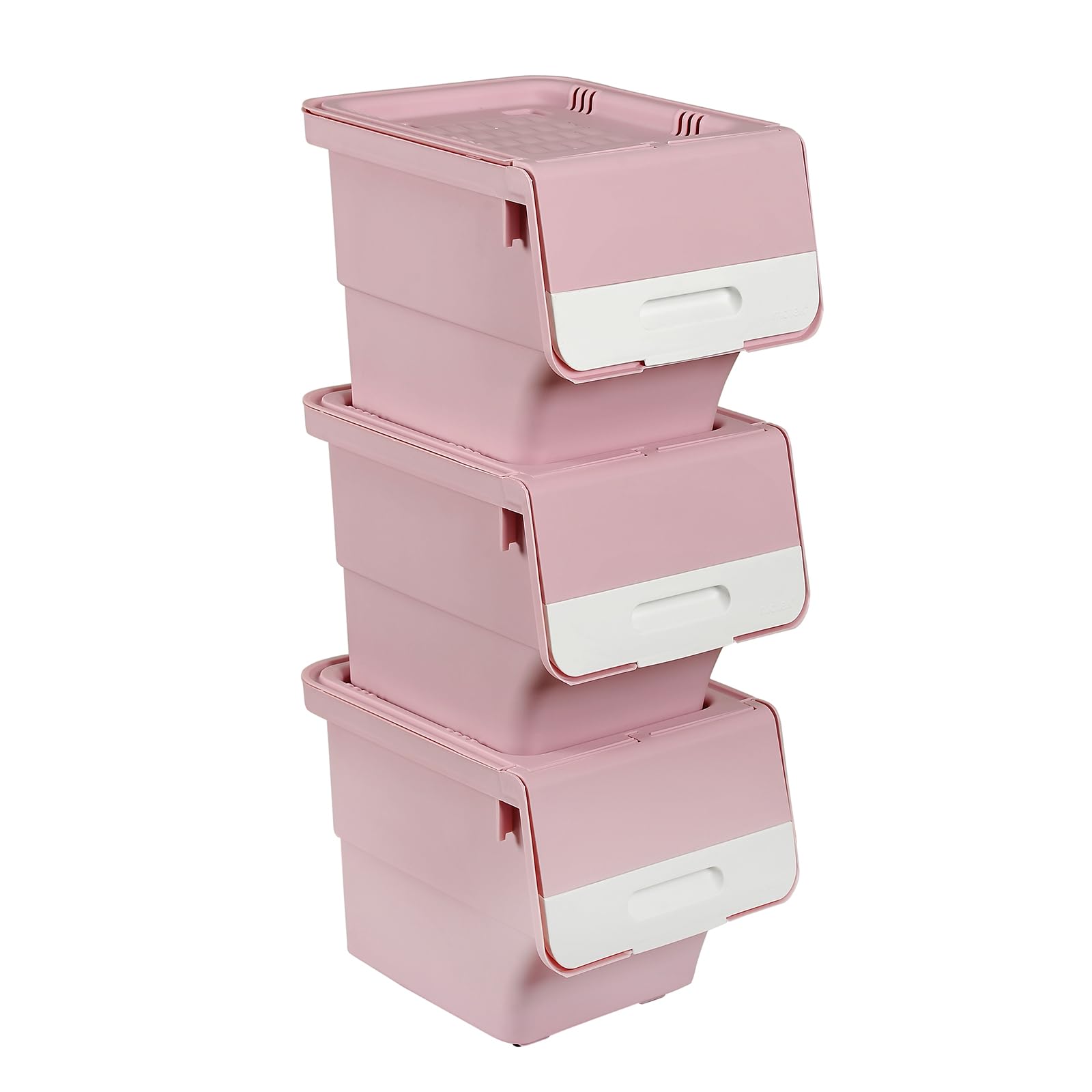 Each bin features a front-opening door with multi-angle design, allowing quick access to your belongings without removing the lid. The interlocking grooves on the lids ensure safe and secure stacking, preventing sliding and tipping. Built-in smooth-rolling wheels provide easy mobility across floors, making transport painless. When not in use, simply remove lids and nest the bins to save space. These lightweight, waterproof bins with premium PP shells are ideal for kitchens, bedrooms, closets, and laundry rooms with style and ease.