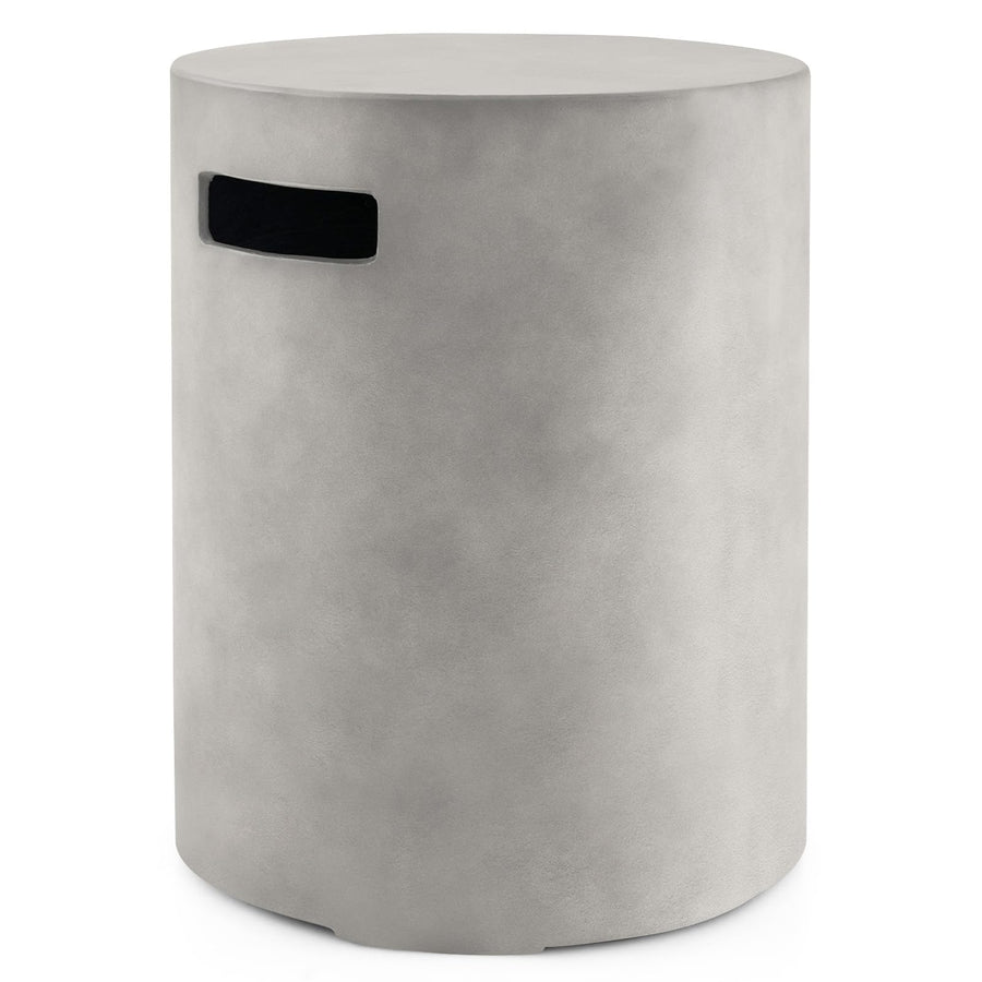 The propane tank cover not only is used for hiding unsightly propane tanks, but also protects them from damage, kids and pets. This propane tank cover features a concrete-like finish made of natural ore powder, which is durable for long-time outdoor use. And well-made details like non-slip foot pads and side handles bring more convenience while using. No assembly is needed when you receive the package. With a simple look, this propane hideaway table easily fits furniture in modern style.