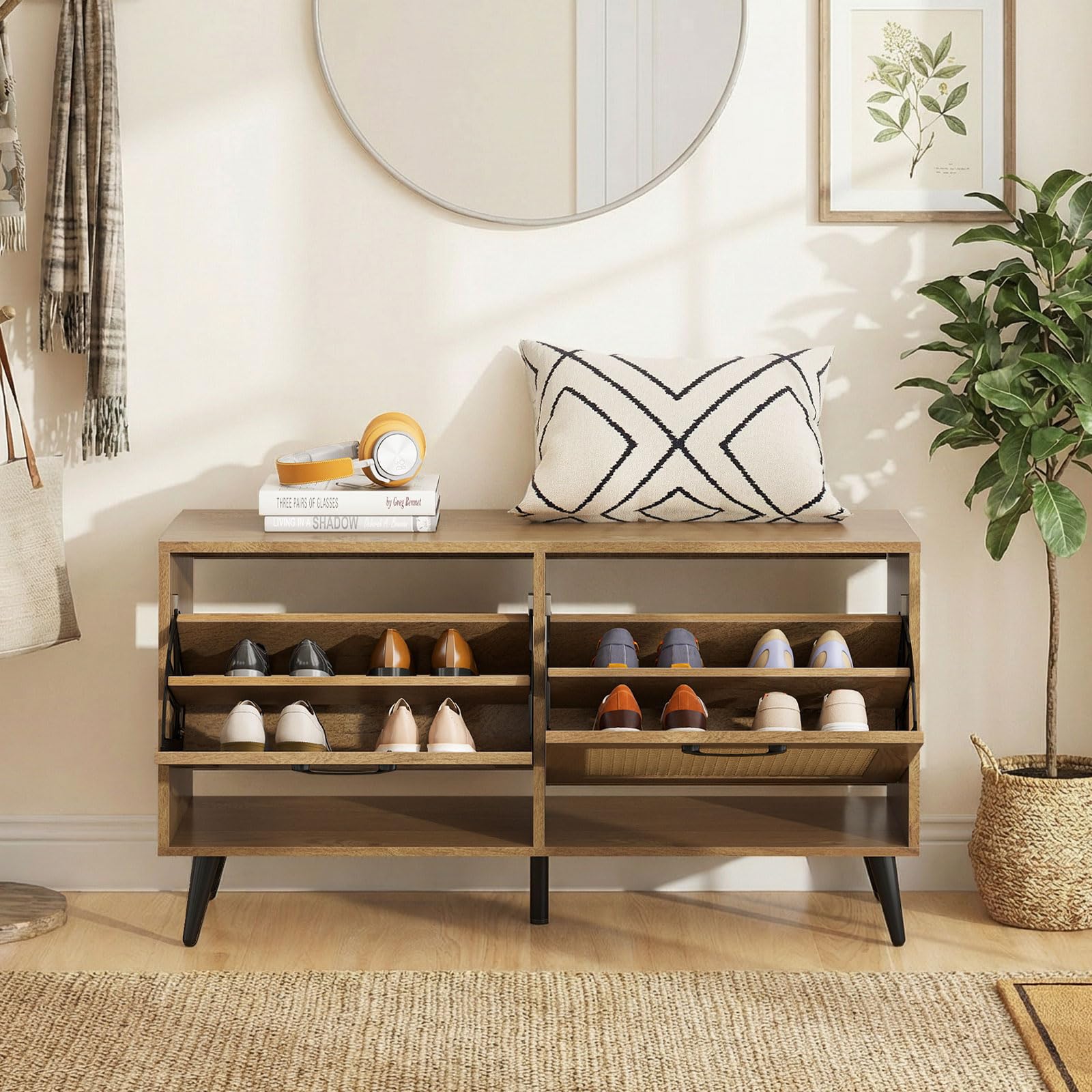 2 flip drawers for easy, space-saving shoe access