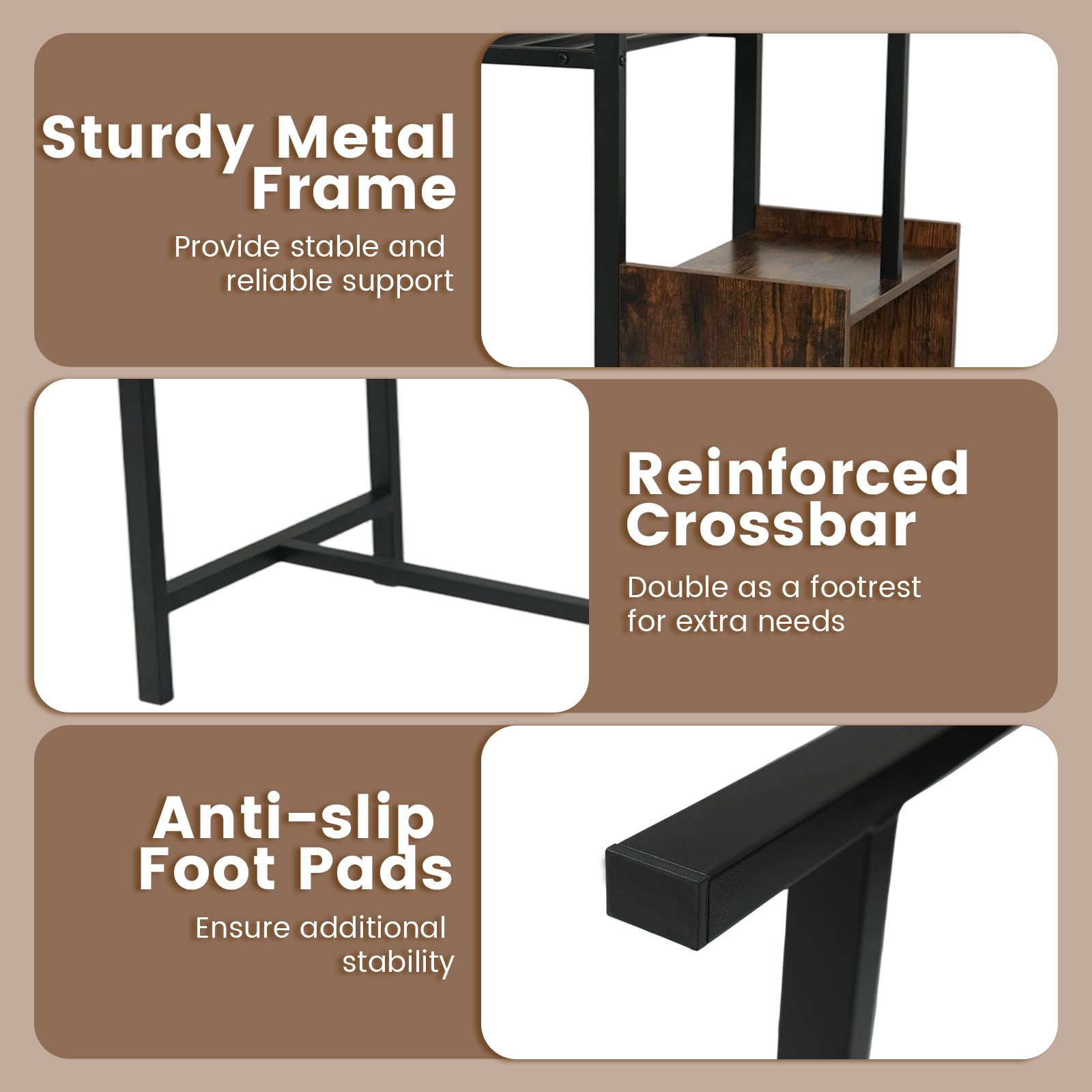 The sturdy metal frame provides stable and reliable support