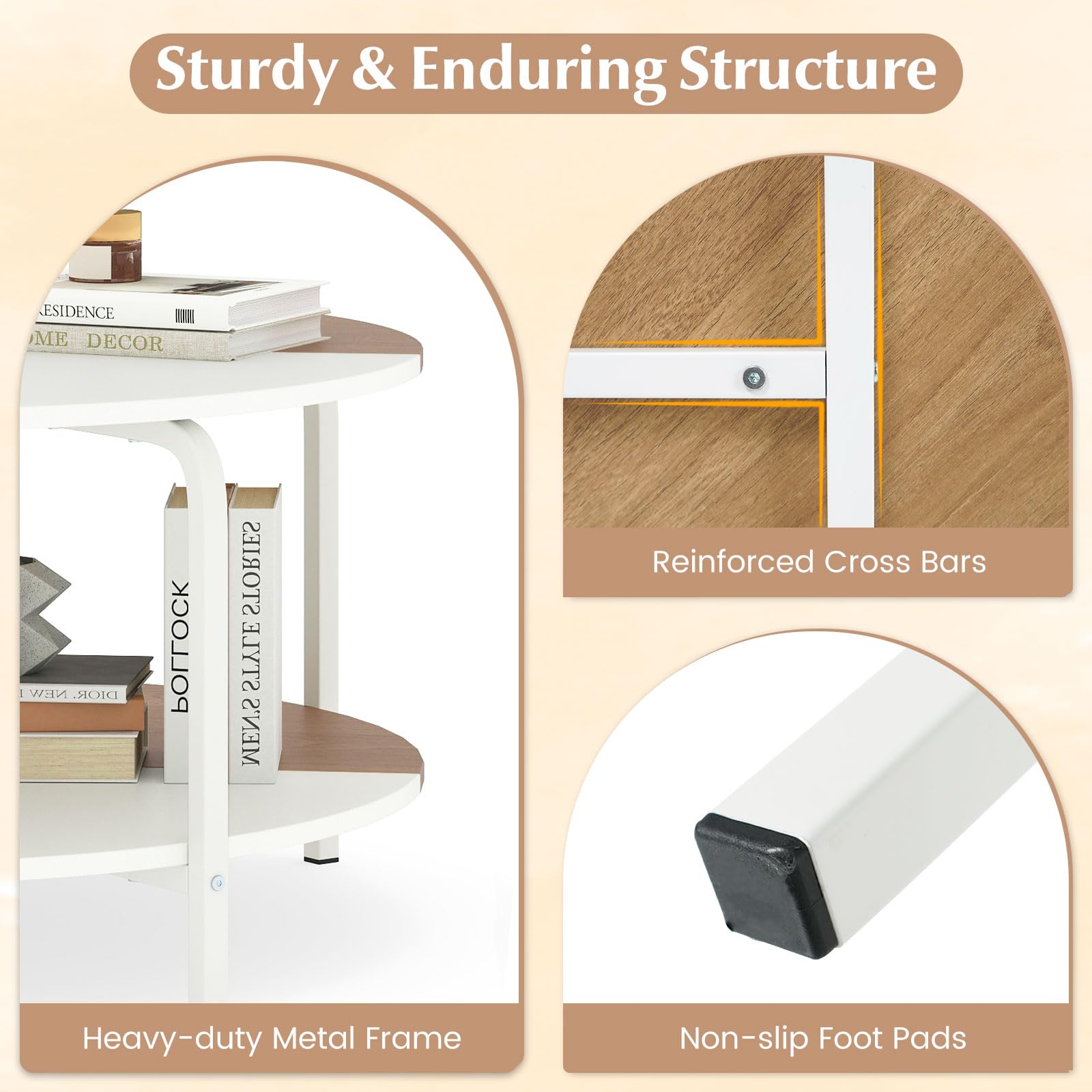 Enhance your living area with this stylish 2-tier coffee table! Unique split-color tabletop adds a vibrant touch, seamlessly complementing a variety of home decorations. Alongside its attractive design, the accent table offers a wide tabletop and an open shelf for organization and easy access. Elevated on sturdy metal legs, the cocktail ensures durability and simplifies cleaning underneath. Ideal for casual dining, remote work, or social gatherings, this accent table combines functionality with modern style for various spaces.