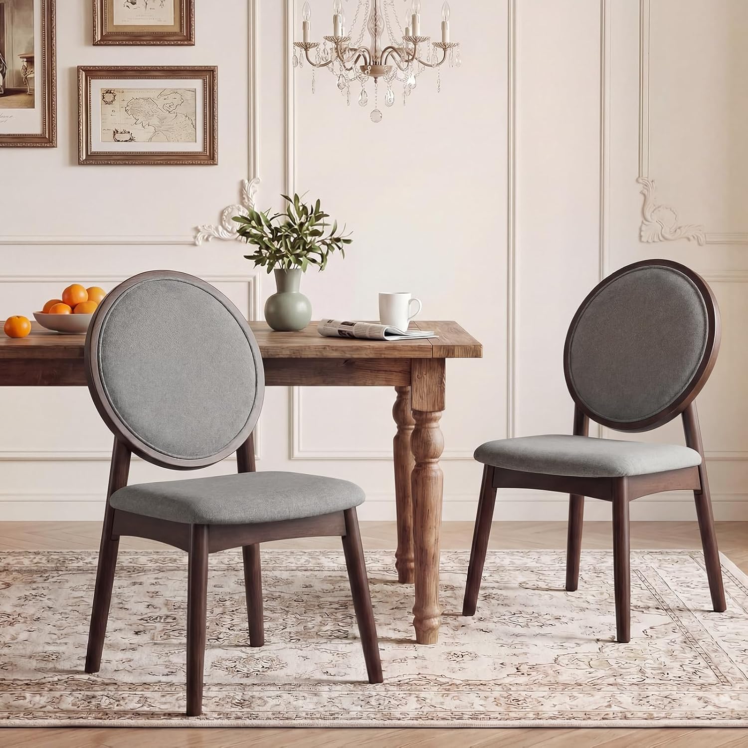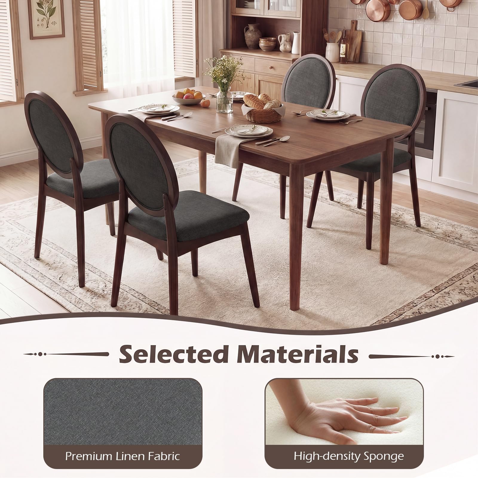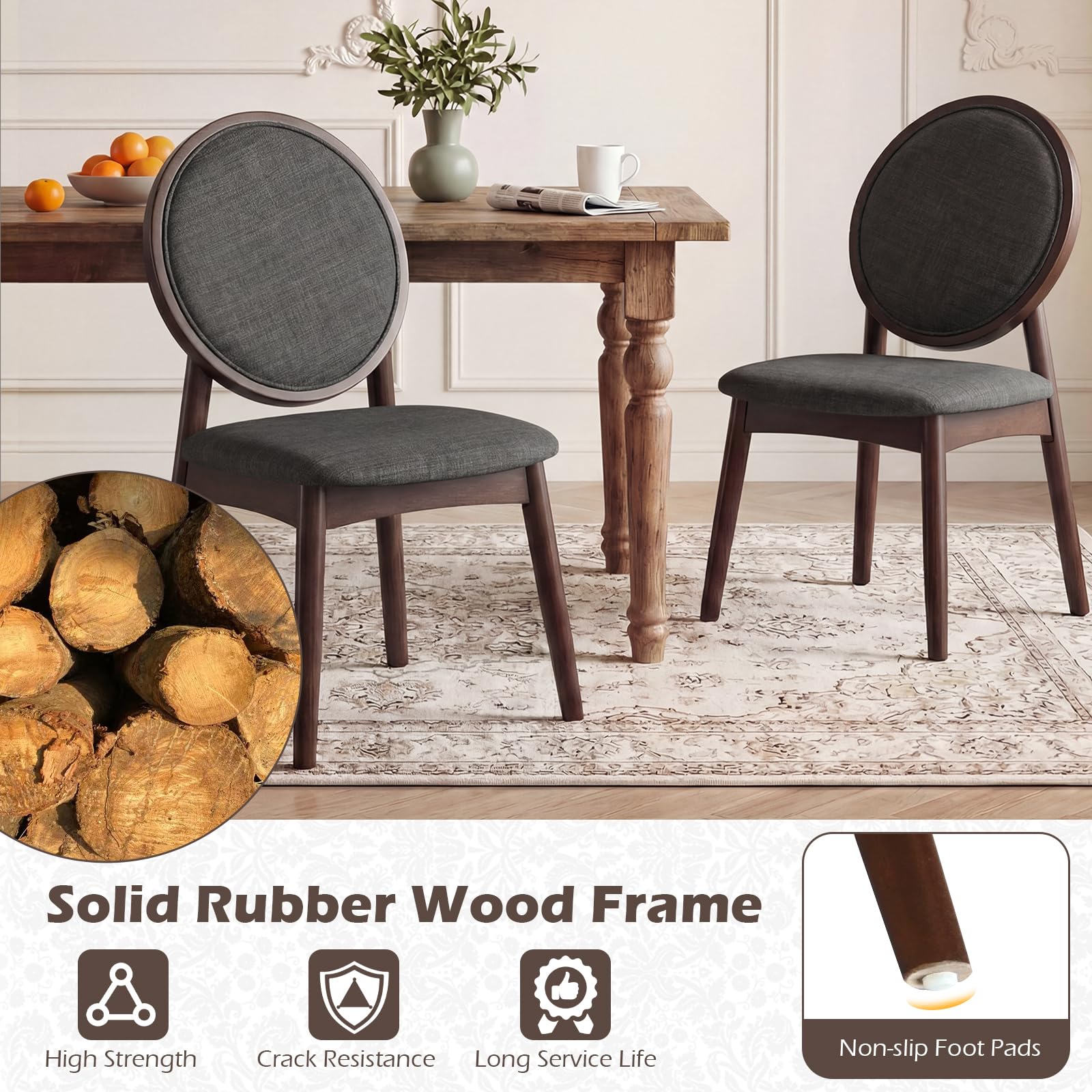 Featuring linen fabric upholstery and soft sponge-padded seat, the dining chairs provide exceptional comfort for you. The ergonomic round backrest offers optimal support, promoting better posture during meals. Built with sturdy rubber wood legs, these kitchen side chairs ensure lasting stability and durability. Non-slip foot pads protect your floors while keeping the chairs firmly in place. Besides, these armless dining chairs blend timeless style with functionality, which is ideal for various settings.
