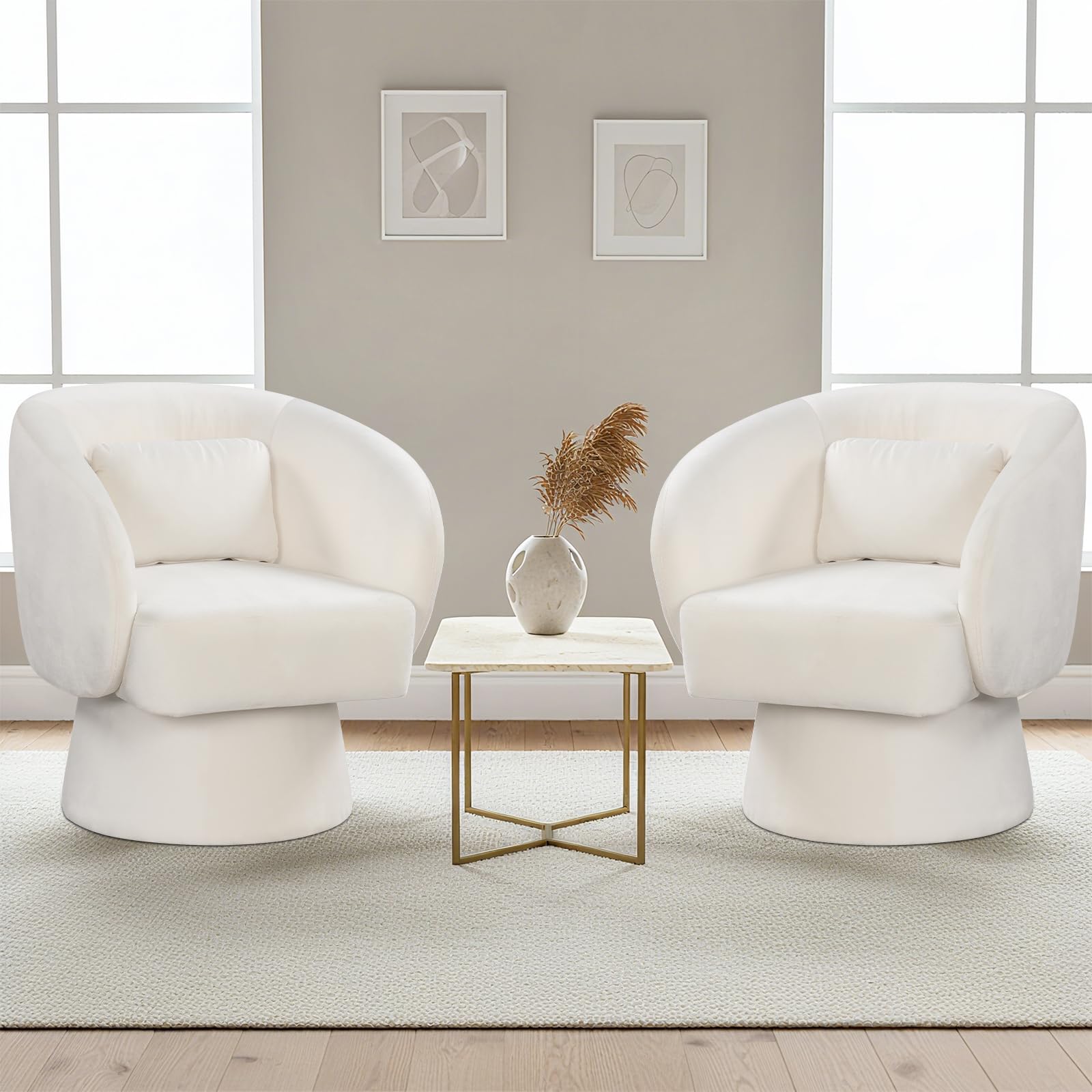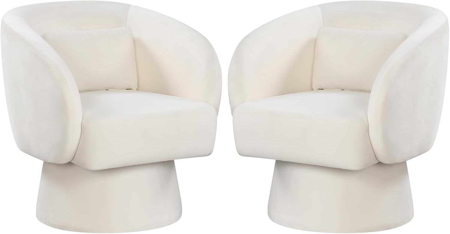 Experience the perfect blend of luxury and convenience with this swivel barrel chair that’s sure to transform any room into a haven of comfort. Spin effortlessly to reach for that remote or welcome guests—all from the comfort of your seat with the chair’s 360° swivel function. Dressed in a plush, skin-friendly fabric and supported by a high-density sponge, it offers a cloud-like seating experience that stays irresistibly comfortable. Whether you’re settling in for a long read or a movie marathon, ergonomic features including a high-curved back, armrests, and a lumbar pillow ensure your body is perfectly supported. Not just a pretty face, this barrel chair boasts a sturdy construction capable of supporting up to 400 lbs, ensuring it stands firmly in place thanks to its large round base and anti-slip foot pads. Perfectly sized for small spaces but with big-chair comfort, this modern accent piece is an excellent investment for any home!