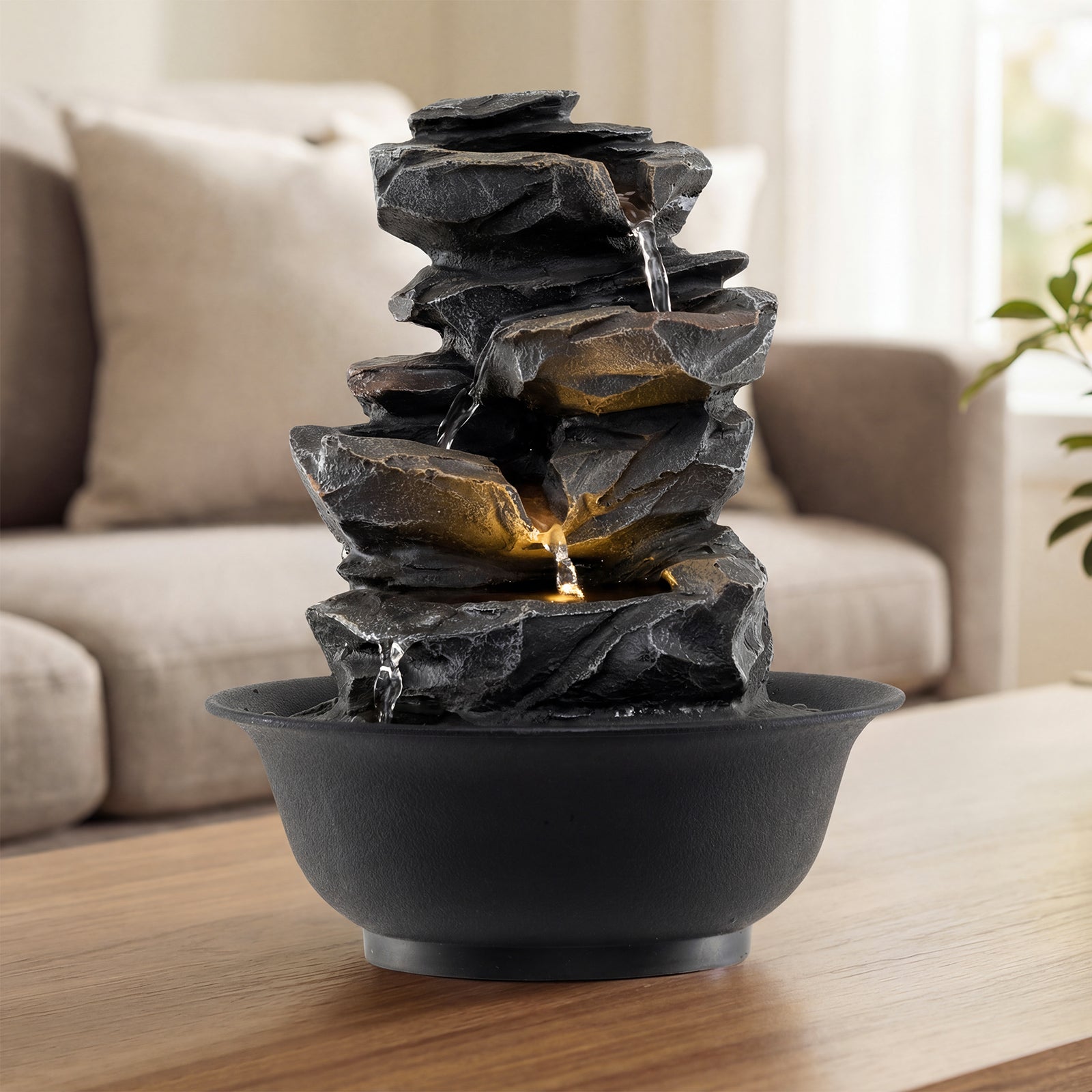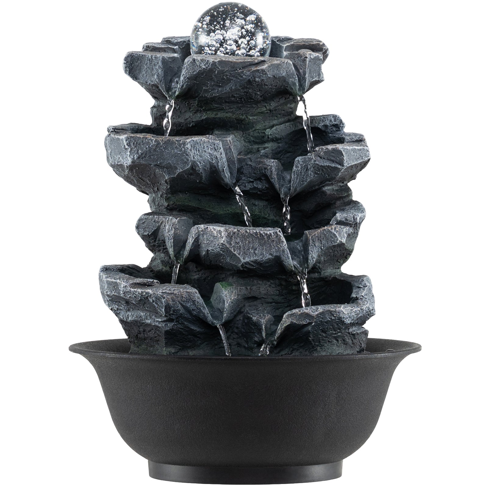 Create a serene focal point with this zen tabletop water fountain. Featuring a tiered waterfall design that mimics natural stone, it delivers gentle, soothing water sounds. A quiet submersible pump keeps water circulating smoothly, while a rotating crystal ball adds a soft ambient glow. Made from lightweight resin, this compact fountain fits perfectly on desks, shelves, or windowsills. Easy to set up, it’s ideal for meditation, bedrooms, or office spaces to relieve stress and enhance tranquility.