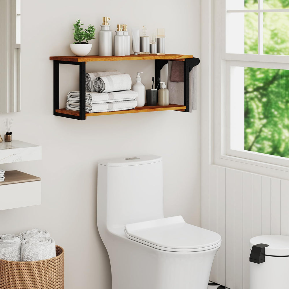Featuring deep shelves for ample storage, this robust wall-mounted rack is complemented by a convenient integrated towel holder. Easy to install with included hardware, it saves floor space and adds functionality to any room. Versatile and elegant, this 2-tier wall shelf seamlessly fits into various areas of your home, providing a stylish and practical organizational solution.
