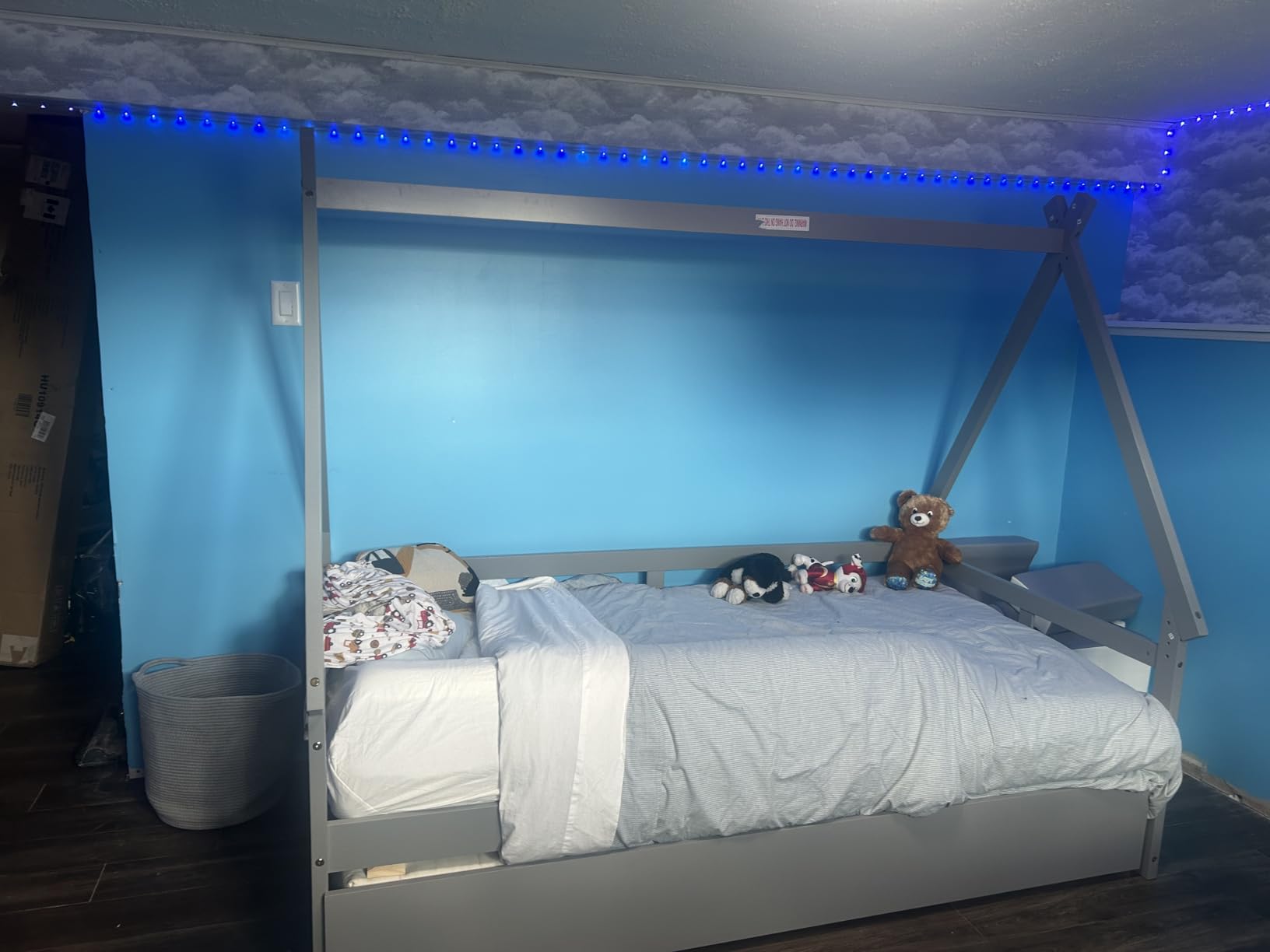 - House Frame for Creative Decoration: The twin daybed features a house-shaped frame that offers a blank canvas for creative decoration plans. This design holds ornaments, lights, or curtains, making it a unique and inviting environment.