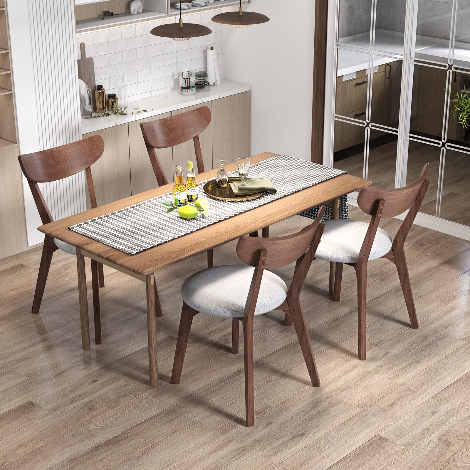 Combining the warm, natural look of walnut wood with the soft texture of grey fabric, these chairs bring a timeless charm to any room—whether you’re hosting a dinner party in the dining room, enjoying a casual breakfast in the kitchen, or adding extra seating in the living room. The ergonomic curved backrest is designed to support your spine, while the padded fabric seat offers long-lasting comfort. The sturdy wood frame and angled legs ensure stability, so you can use these chairs daily without worry. Including all tools and instructions, assembly is a breeze.