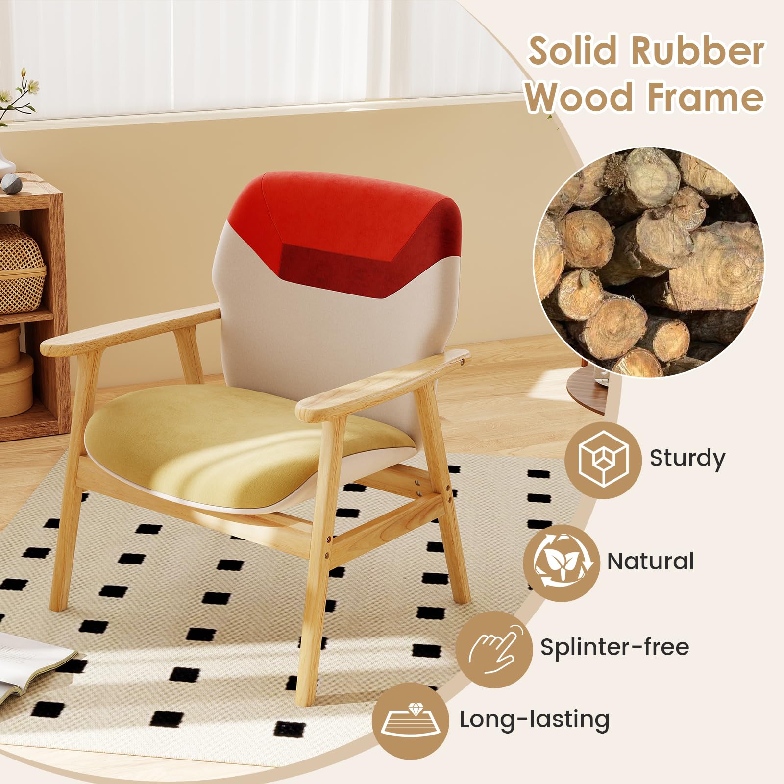 Supported by rubber wood legs, the side chair stays stable on the ground. Anti-slip felt pads enhance overall steadiness. The spacious backrest and deep seat make you feel comfortable. High quality polyester fabric and high density sponge allow for a cozy sitting experience. The wooden chair will be an ideal option for different activities, such as relaxing, working from home, or reading magazines. Furthermore, the multi-colored fabric and natural wood frame make the chair a wonderful addition to your living room, reading room, study, and more.