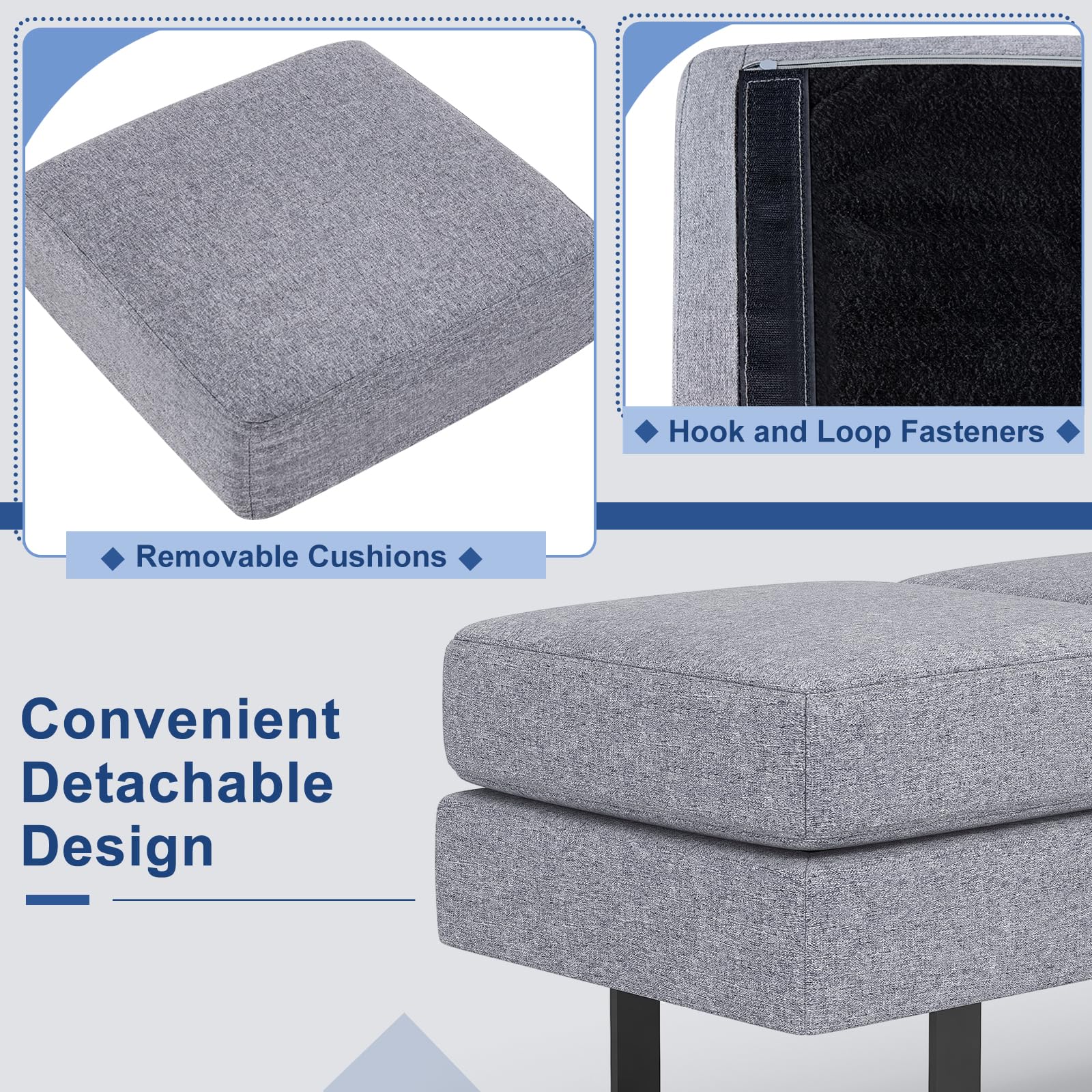 • 【Comfortable Seating】: With 5” thickened cushions that provide excellent support and pressure relief, this waiting chair ensures a comfortable experience for your guests. The breathable faux linen surface offers a skin-friendly touch, and the removable cushion allows for easy maintenance, ensuring lasting comfort.