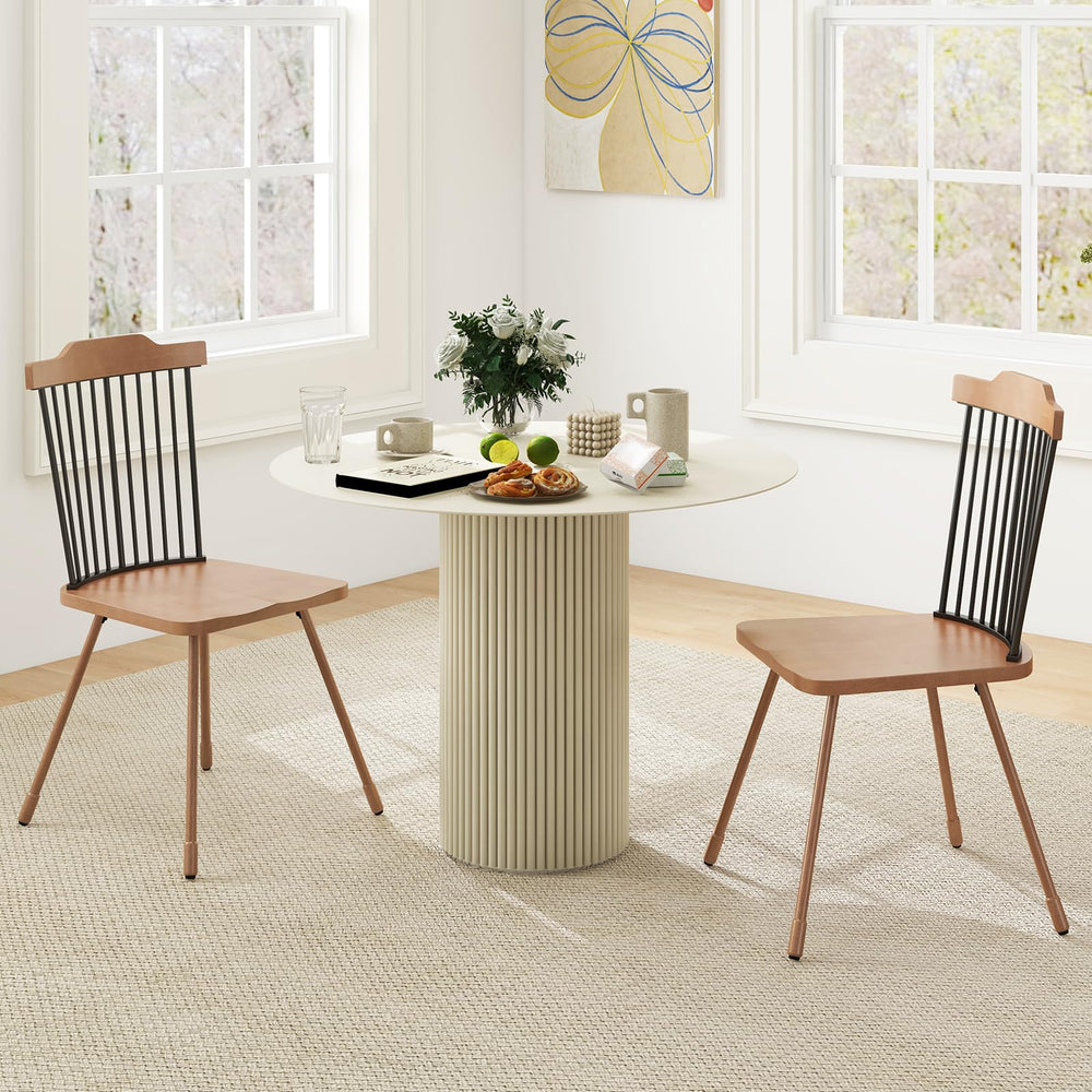 Dive into the world of timeless elegance! Our spindle back chairs, capturing the quaint essence of classic Windsor designs, are more than just beautiful. They’re built to support and embrace your back, ensuring every dinner feels more like a treat than a task. Picture your family gathered around, ensconced in the luxurious contours that fit like a glove. Below, sturdy metal legs anchor your sanctuary, complete with adjustable pads for sheer perfection on any floor. Plus, setting up is a breeze! Add unrivaled charm and comfort to your home; let our chairs make every meal memorable!