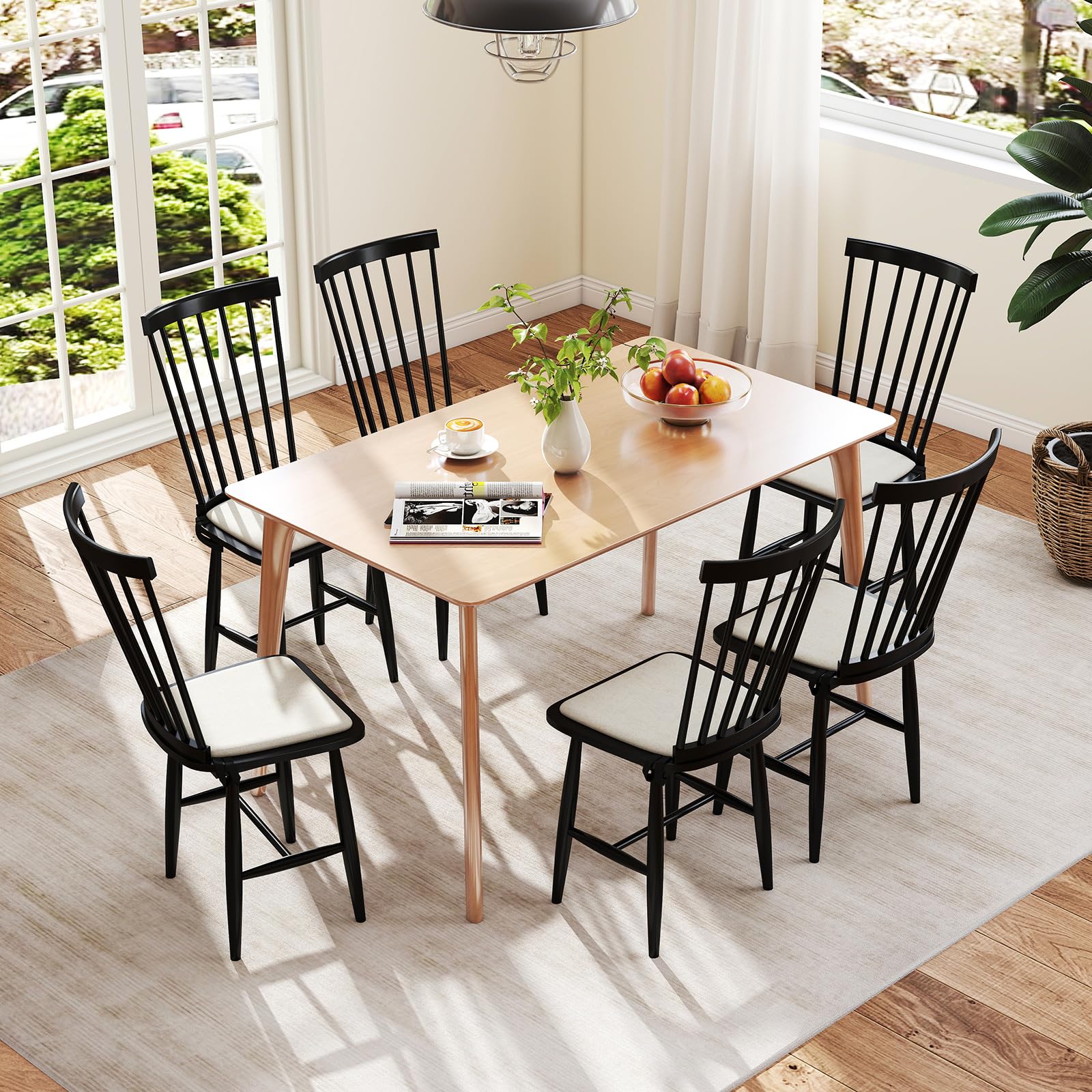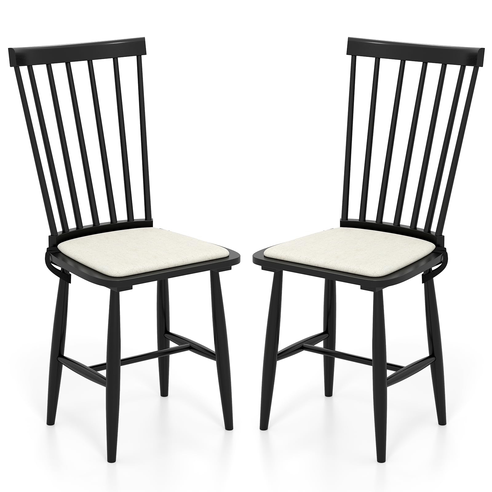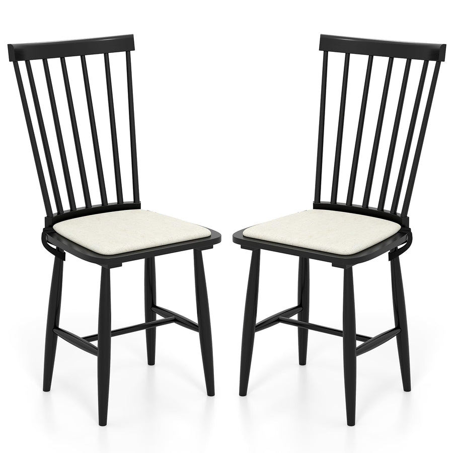 Each dinging chair is designed with an arched spindle back, complemented by a padded seat cushion for optimal support. The sturdy rubber wood frame ensures durability, while anti-slip foot pads provide stability and floor protection. Ideal for kitchens, dining rooms, or restaurants, these versatile chairs effortlessly blend into any decoration scheme, adding a touch of timeless elegance to your space.