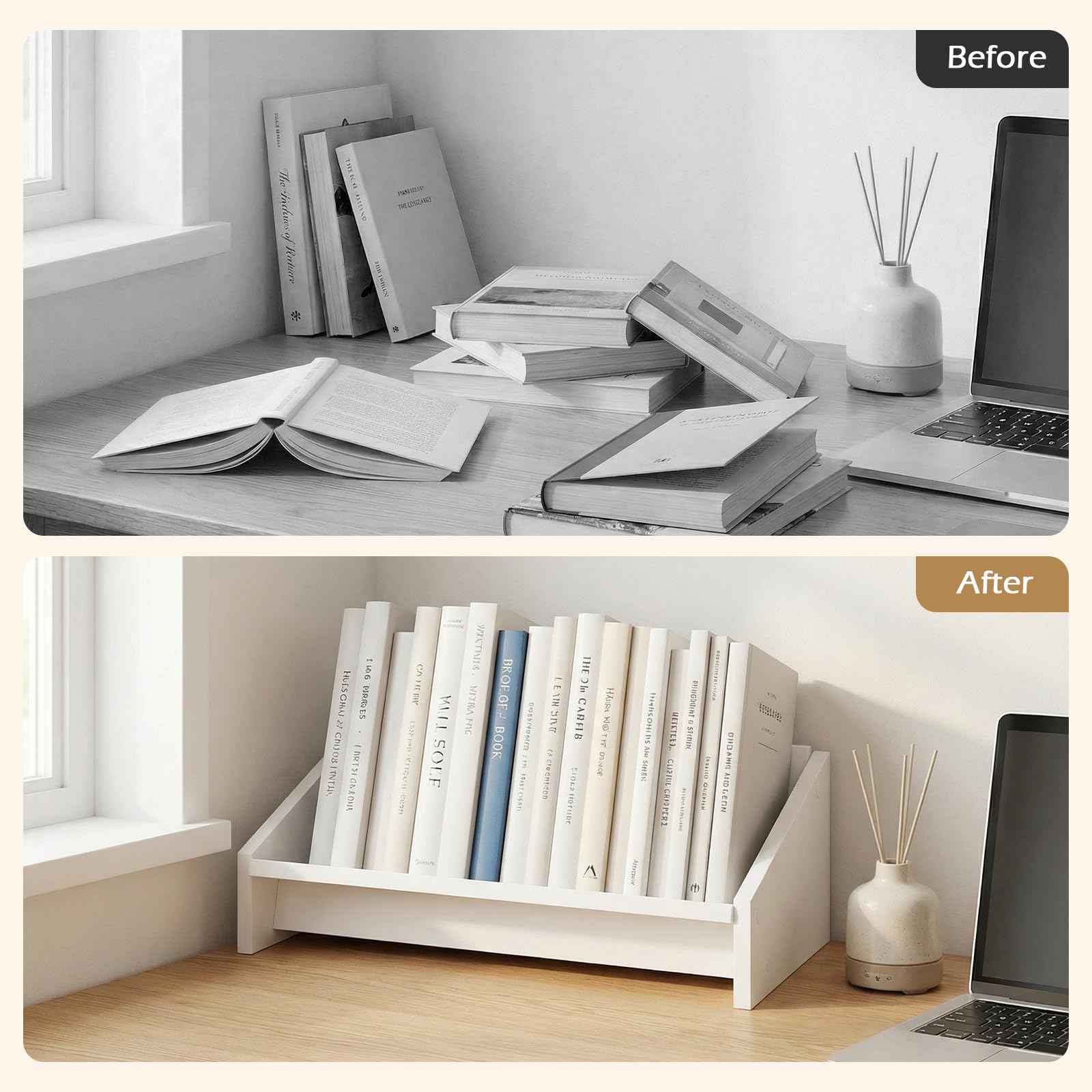 Keep your desk clutter-free with this stylish wooden tilting bookshelf organizer!
