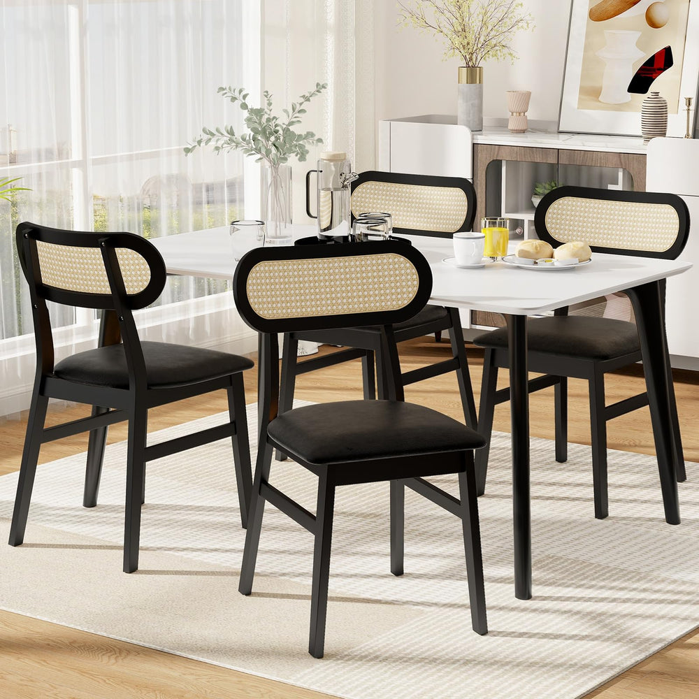 - [Breathable Rattan Backrest]: These wooden dining chairs feature breathable hand-woven rattan backrests that ensure optimal airflow and comfort during long dining sessions. Additionally, the rattan design adds an elegant touch to any dining area.